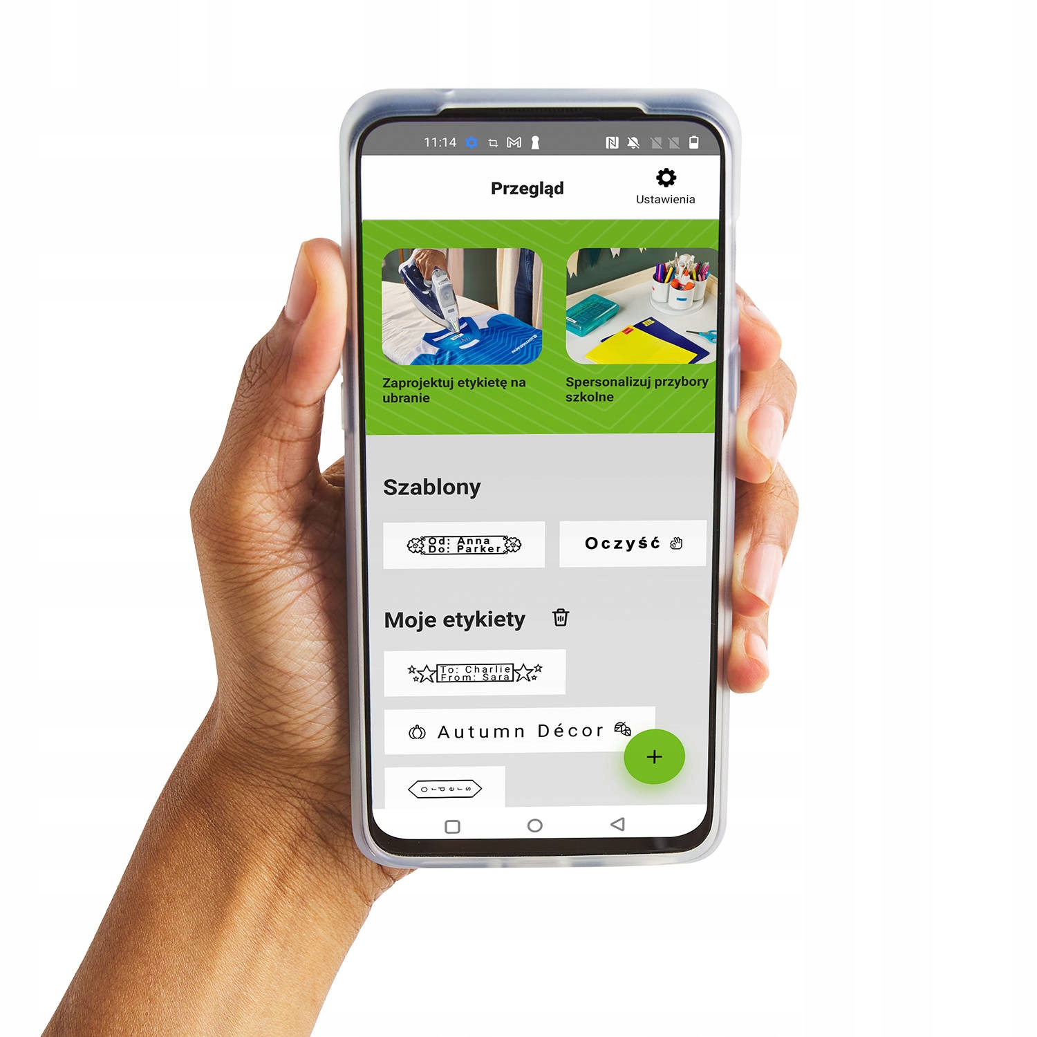 Drukuj etykiety gdziekolwiek jesteś – bez potrzeby podłączania do komputera. Idealna do szybkiego i wygodnego oznaczania pojemników, szuflad, dokumentów czy narzędzi.