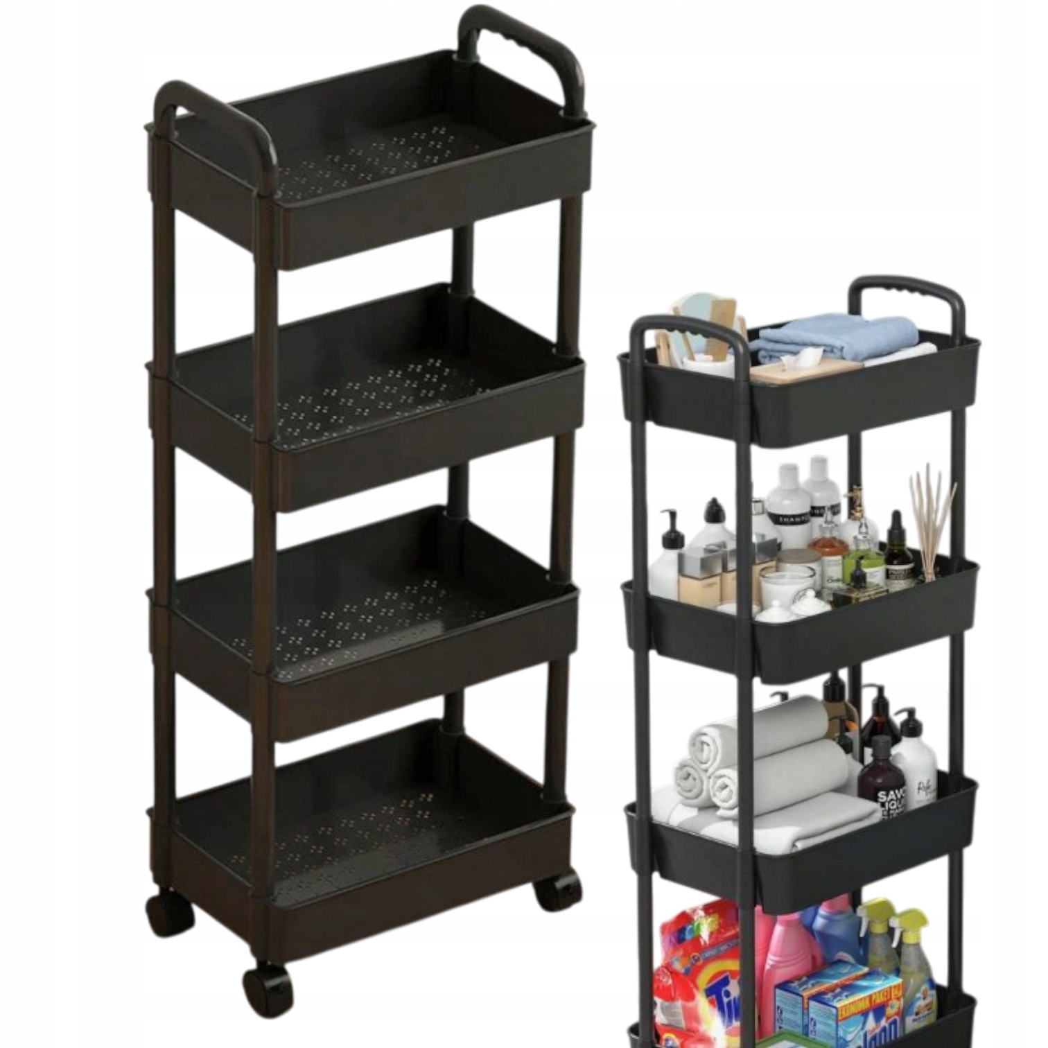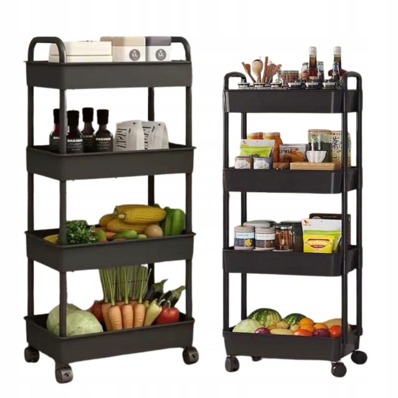 Praktyczna czteropoziomowa półka na kółkach. Sprawdzi się świetnie zarówno w domu jak i warsztacie. Można przechowywać w nich rzeczy kuchenne, łazienkowe, a także drobne akcesoria. Dzięki uniwersalnemu designowi sprawdzi się świetnie w każdym wnętrzu. Organizacja produktów spożywczych czy owoców nie była jeszcze tak łatwa .