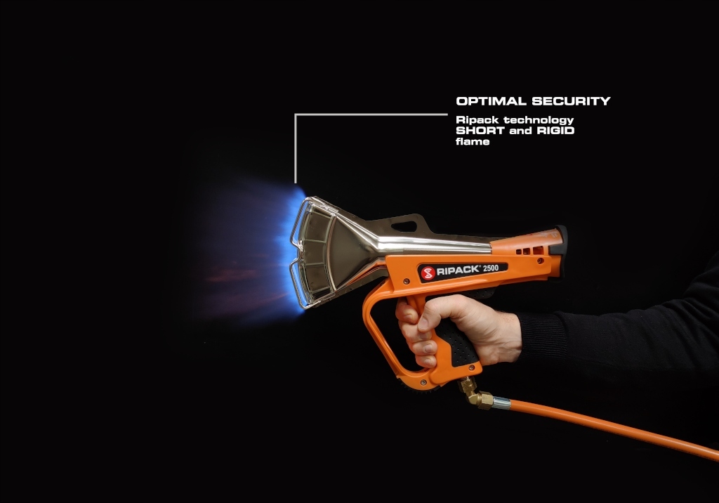 Pistolet RIPACK został specjalnie zaprojektowany do obkurczania folii LDPE i umożliwia owinięcie palet lub towarów folią termokurczliwą.