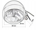 Głębokość lampy 97mm, średnica 98mm, średnica samego klosza 80mm, śruba mocująca m10.