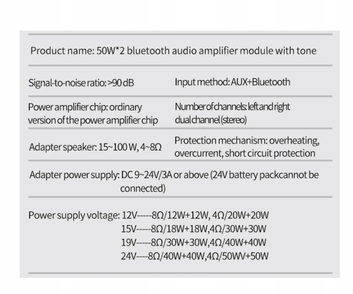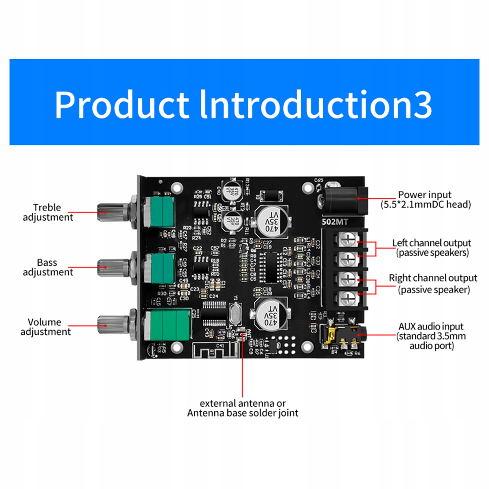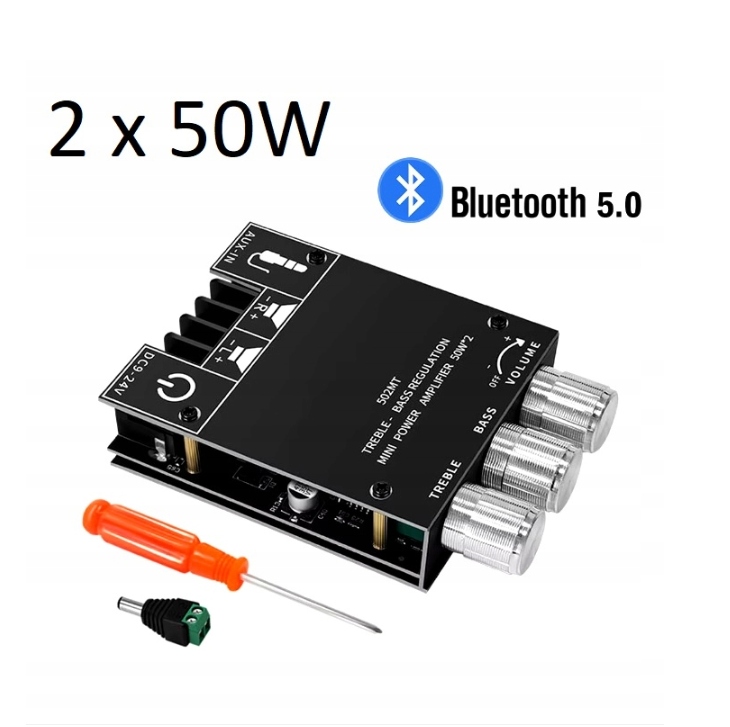 Модель Wzmacniacz 2 x 50W regulacja basu i tonów BT 5.0
