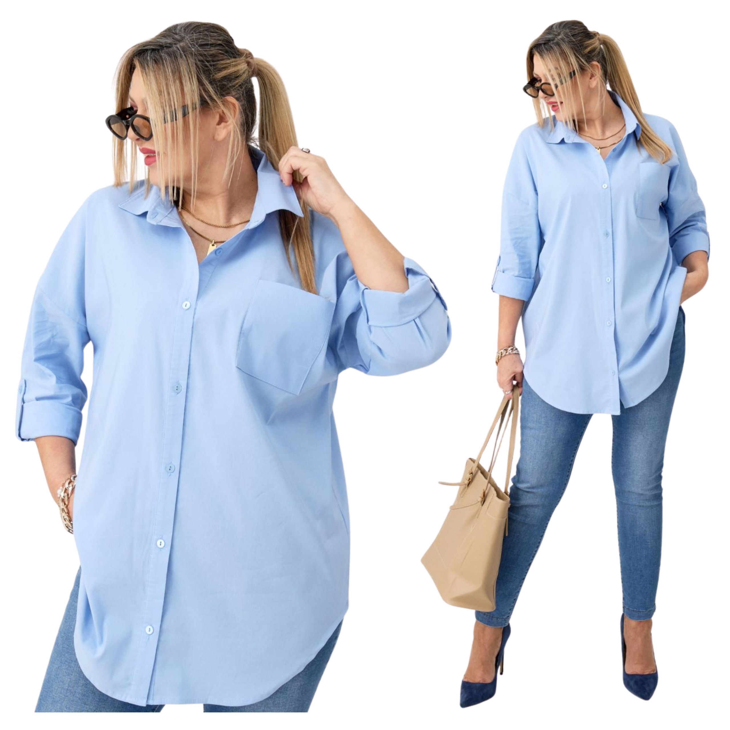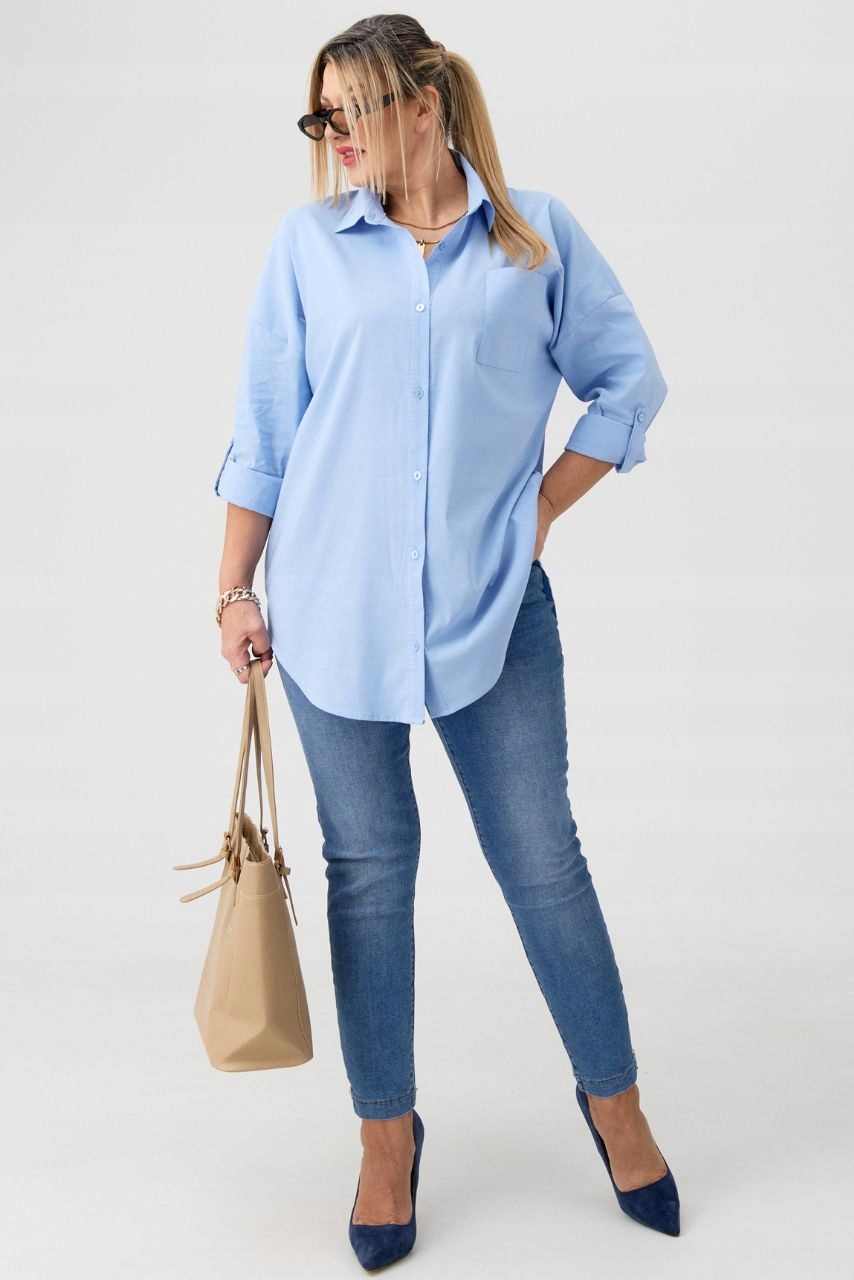 Koszula damska w stylu oversize to idealna propozycja dla kobiet poszukujących modnej, wygodnej i klasycznej odzieży. Ta koszula z kieszenią na przodzie to połączenie modnego designu z klasycznym wykończeniem. Wygodny krój i praktyczne detale sprawiają, że jest to ubranie, które z łatwością dostosuje się do różnych okazji i preferencji stylizacyjnych, będąc jednocześnie doskonałą propozycją dla współczesnych pań.