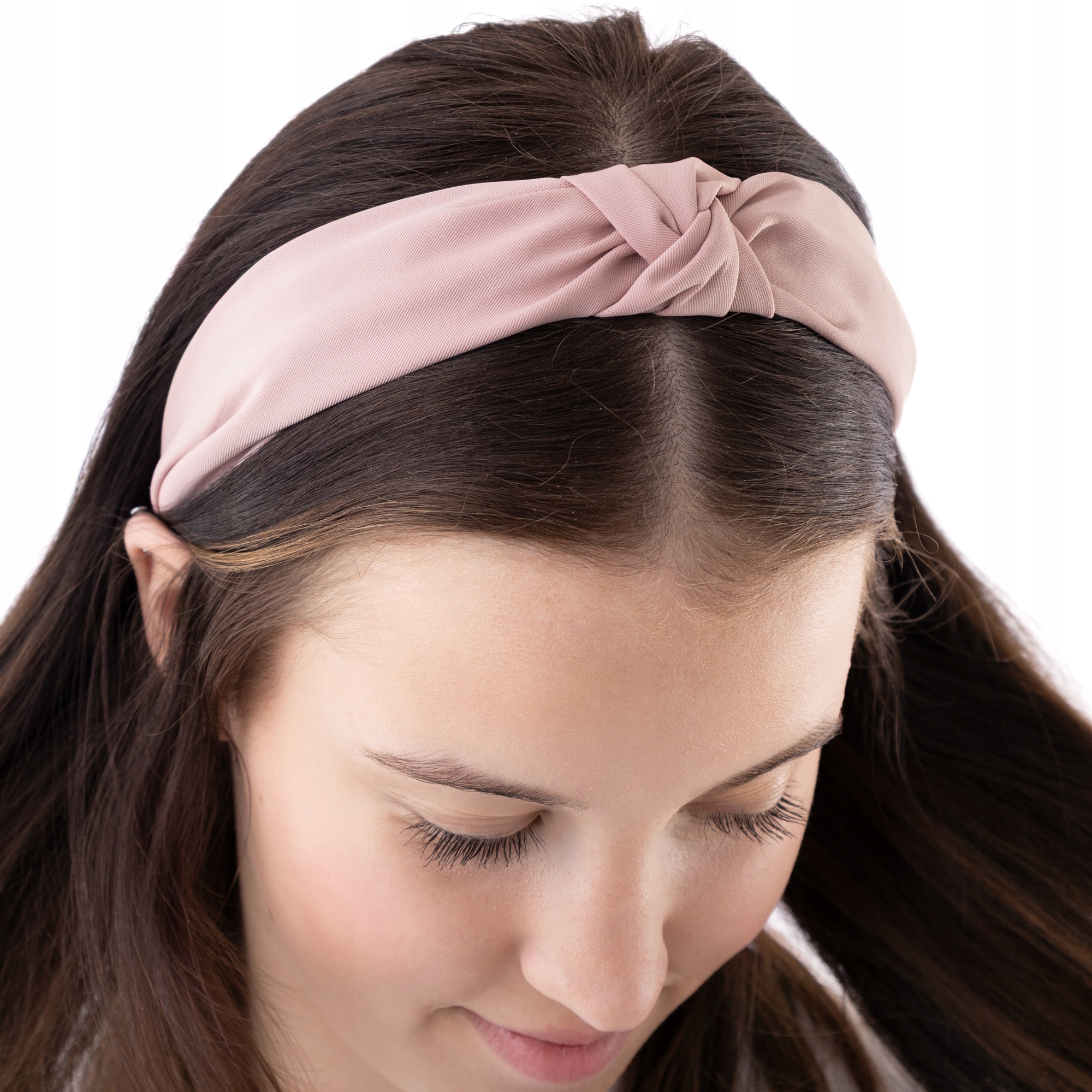 Stylowy komplet 4 miękkich opasek na włosy z efektownym węzłem na górze. W zestawie znajdują się dwa modele jednokolorowe (beż i pudrowy róż) oraz dwa wzorzyste – w serduszka i panterkę. Idealne do codziennych stylizacji, na co dzień, do pracy lub na prezent.