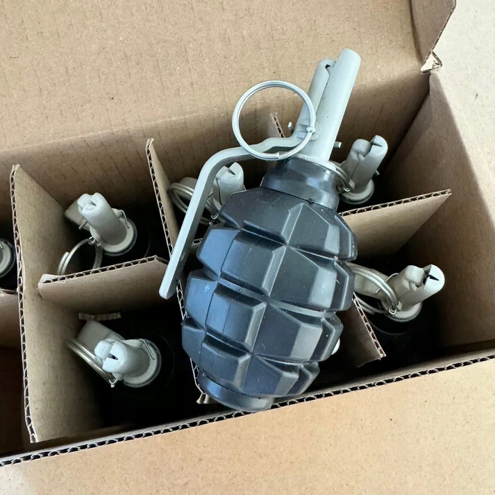 Symulacyjno-treningowy granat, aktywowany przez wyciągnięcie zawleczki. Do użycia w szkoleniach militarnych, rekonstrukcjach oraz bezpiecznej nauki posługiwania się granatem typu F1. Wagą i kształtem odpowiada 1:1 prawdziwemu granatowi F1!