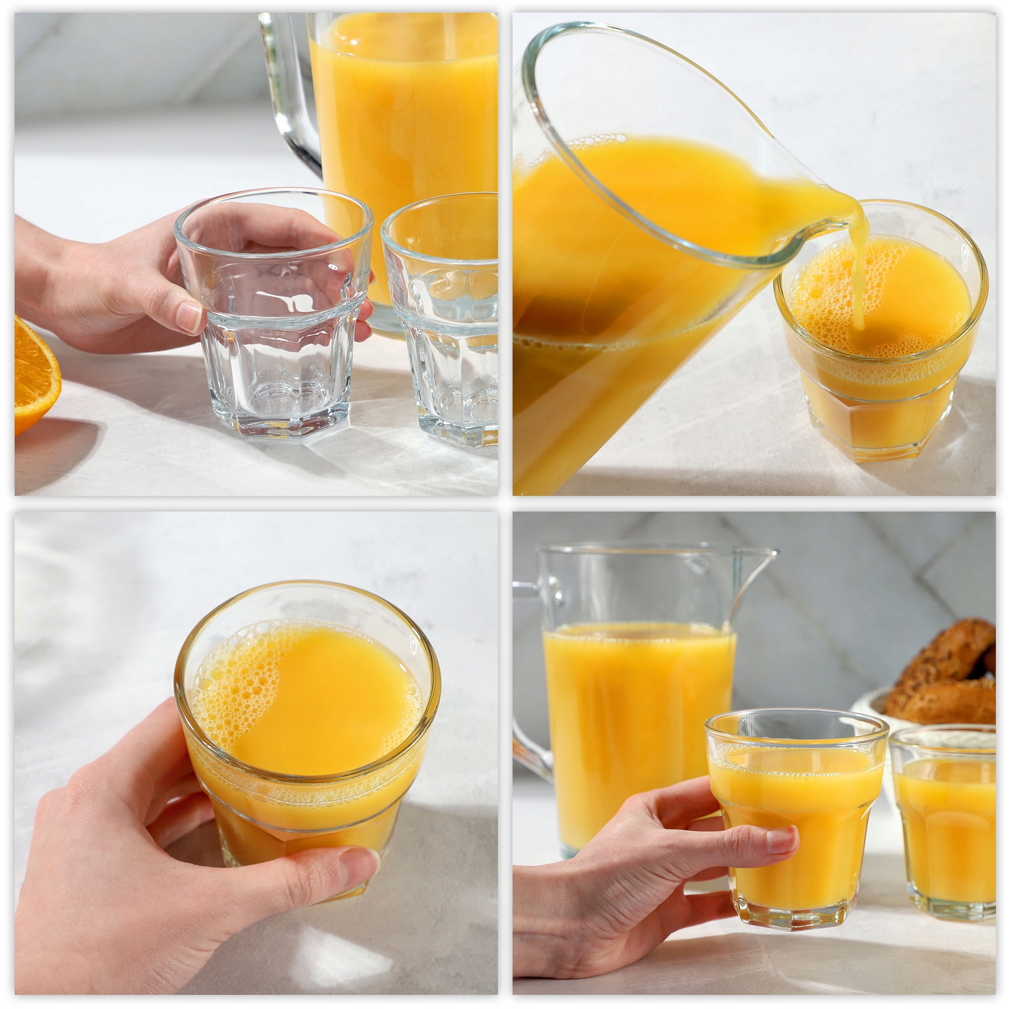 ✅WYTRZYMAŁE – szklanki do soków i napojów wykonano z grubego szkła sodowo-wapniowego, które jest bezpiecznie dla żywności. Solidne ścianki sprawiają, że korzystanie z nich będzie w pełni bezpieczne.