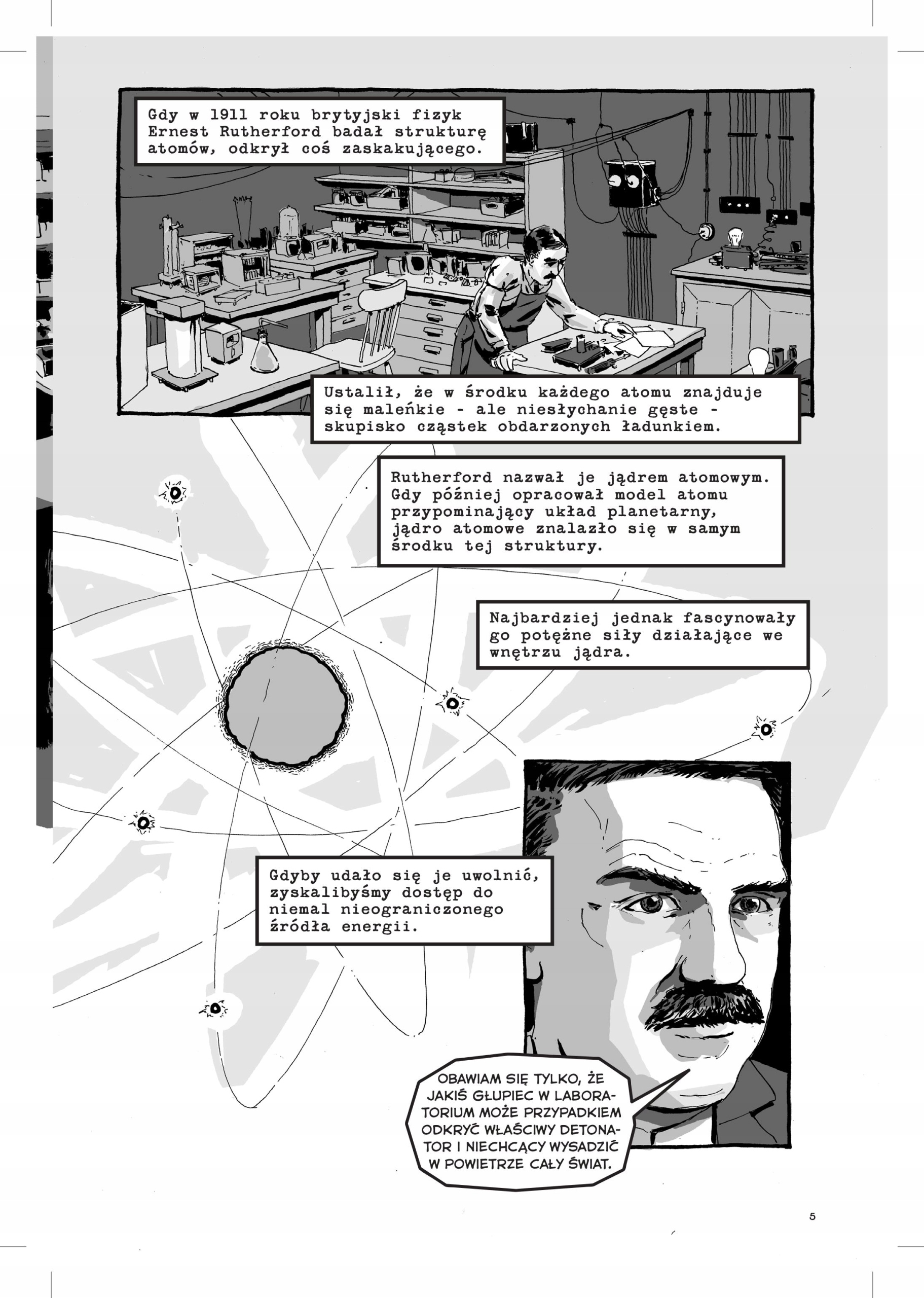 Głównymi postaciami tej opowieści są pracujący pod kierunkiem tajemniczego J. Roberta Oppenheimera genialni uczeni, którzy skonstruowali bombę i muszą żyć ze świadomością, że w nieodwracalny sposób zapoczątkowali nową, przerażającą epokę w dziejach świata. Jonathan Fetter-Vorm opowiada o strasznych skutkach zrzucenia bomby w Hiroszimie i Nagasaki przez pryzmat historii pojedynczych ludzi.