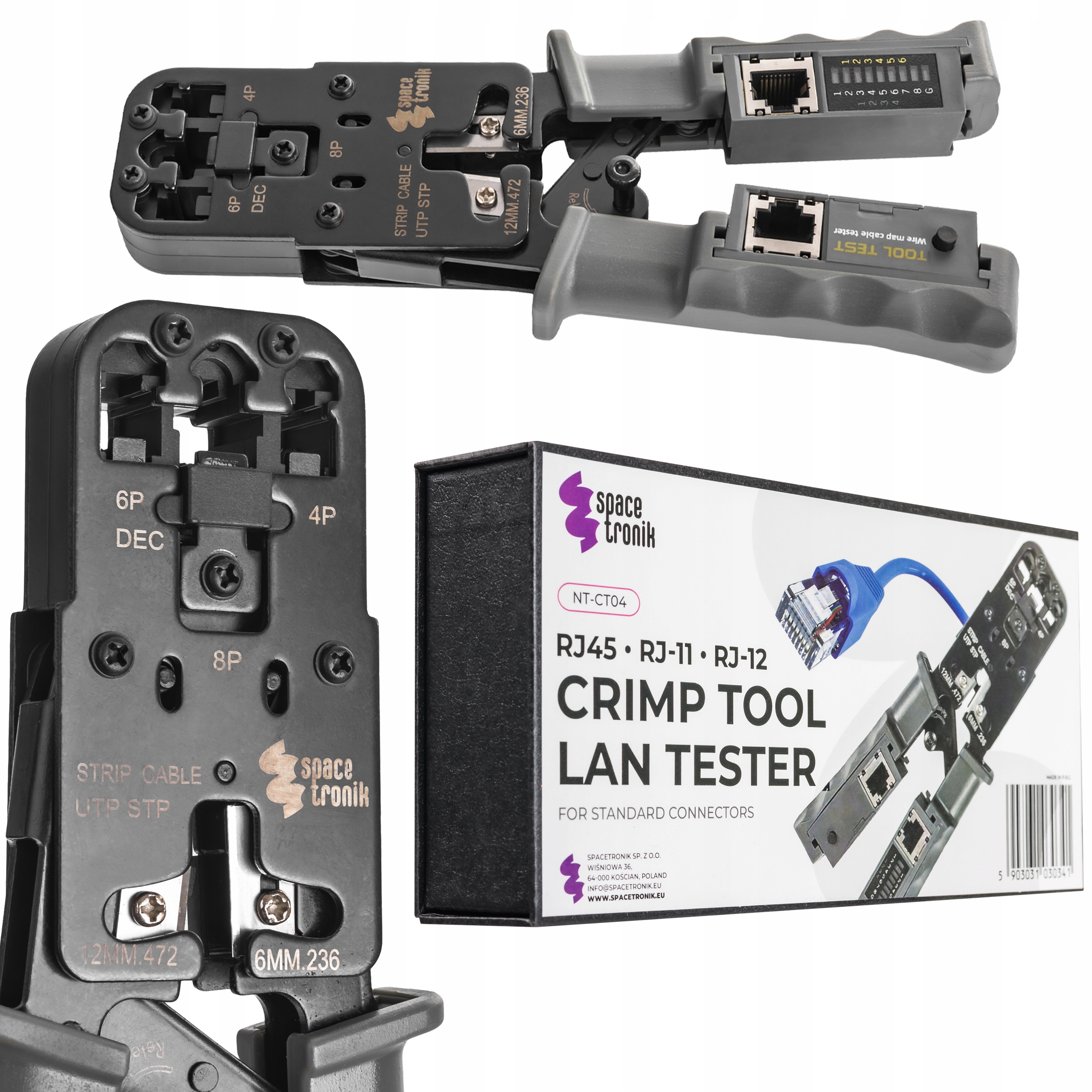Wbudowany tester sieciowy LAN umożliwia szybkie sprawdzenie poprawności połączeń kabli zakończonych wtykami RJ45 (8 żył). Dwa moduły (główka i końcówka) można rozdzielić, co ułatwia testowanie kabli nawet w trudno dostępnych miejscach. Diody LED wyraźnie sygnalizują poprawność działania każdego przewodu.