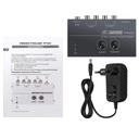 ✅2 wejścia RCA (L i R), 2 wyjścia RCA (L i R), 1 wyjście TRS 1/4", wiele opcji połączeń.