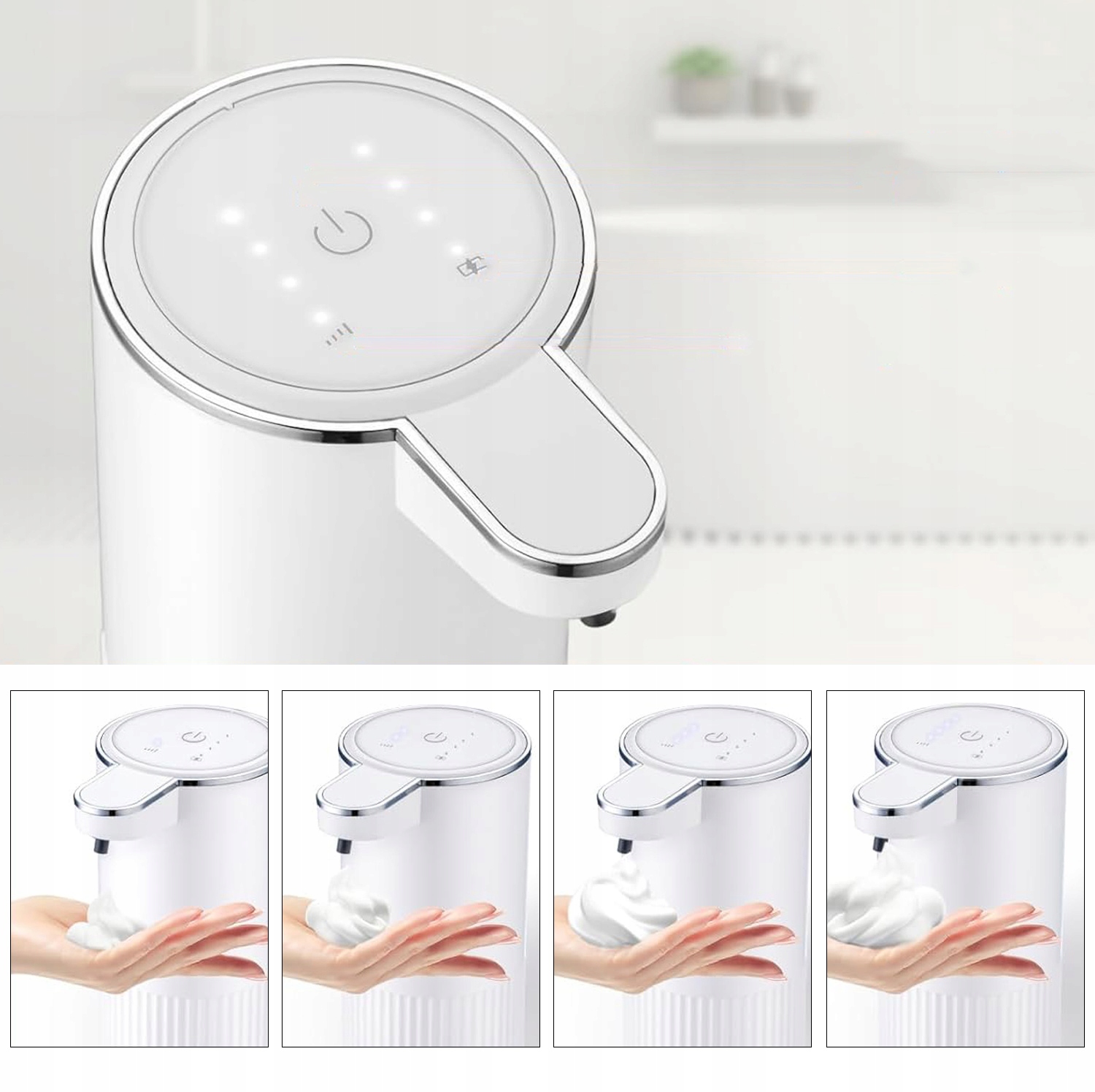 - Dotknij przycisku na górze, aby wybrać jedną z 4 różnych ilości mydła, odpowiednich do różnych potrzeb związanych z czyszczeniem. Poziom 1 służy do codziennego mycia rąk, a poziom 4 do usuwania plam. Wybrany poziom można zawsze sprawdzić po liczbie włączonych świateł.