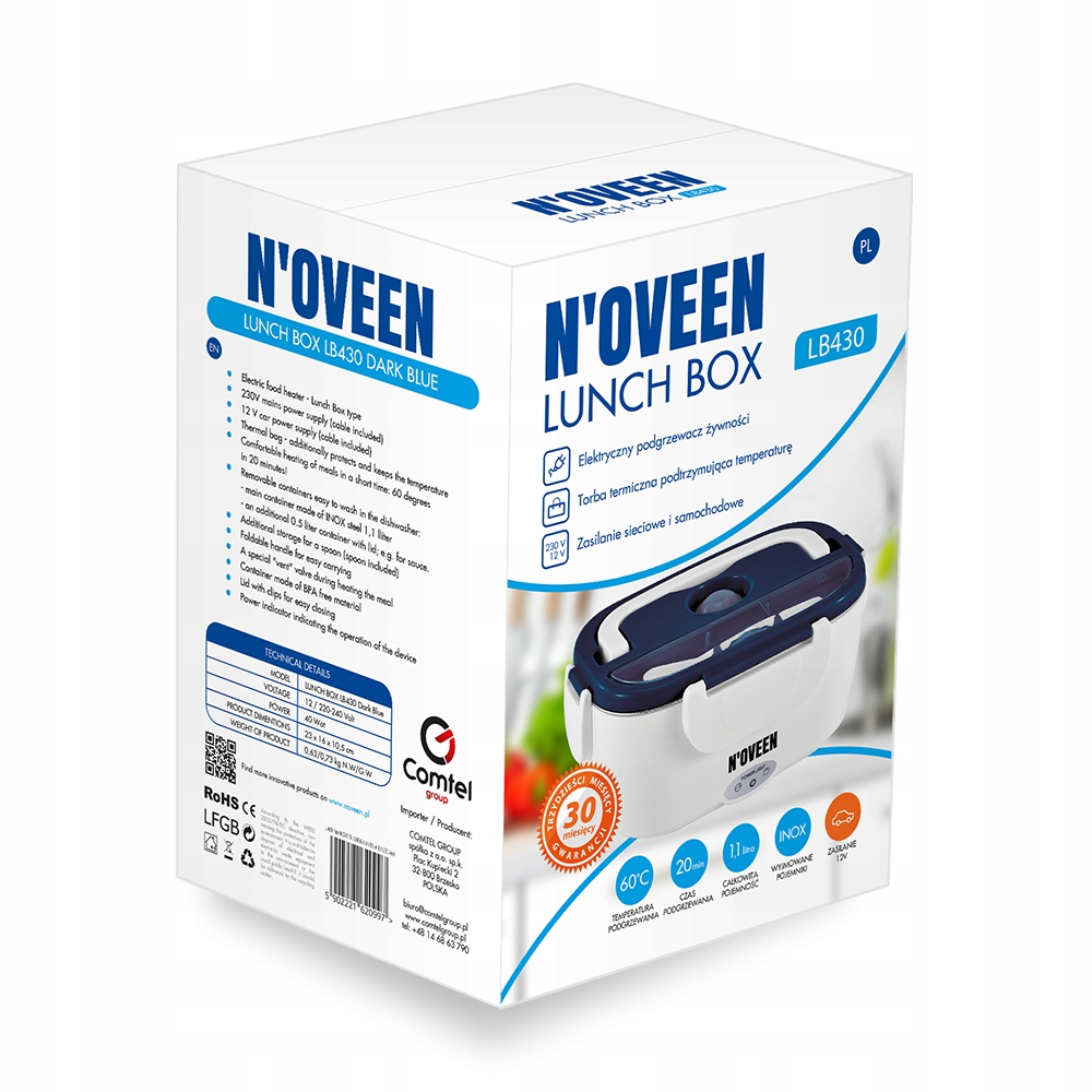 Solidnie i estetycznie wykonane urządzenie wyposażone jest w element grzewczy PTC, który umożliwia podgrzanie jedzenia do 60° C w ciągu 20 minut. Podgrzewacz zamykany jest szczelnie na zatrzaski, które blokują dostęp powietrza. Dzięki temu posiłek zachowuje świeżość na dłużej. Lunch Box LB430 to rozwiązanie dla ludzi ceniących aktywność i zdrową dietę.