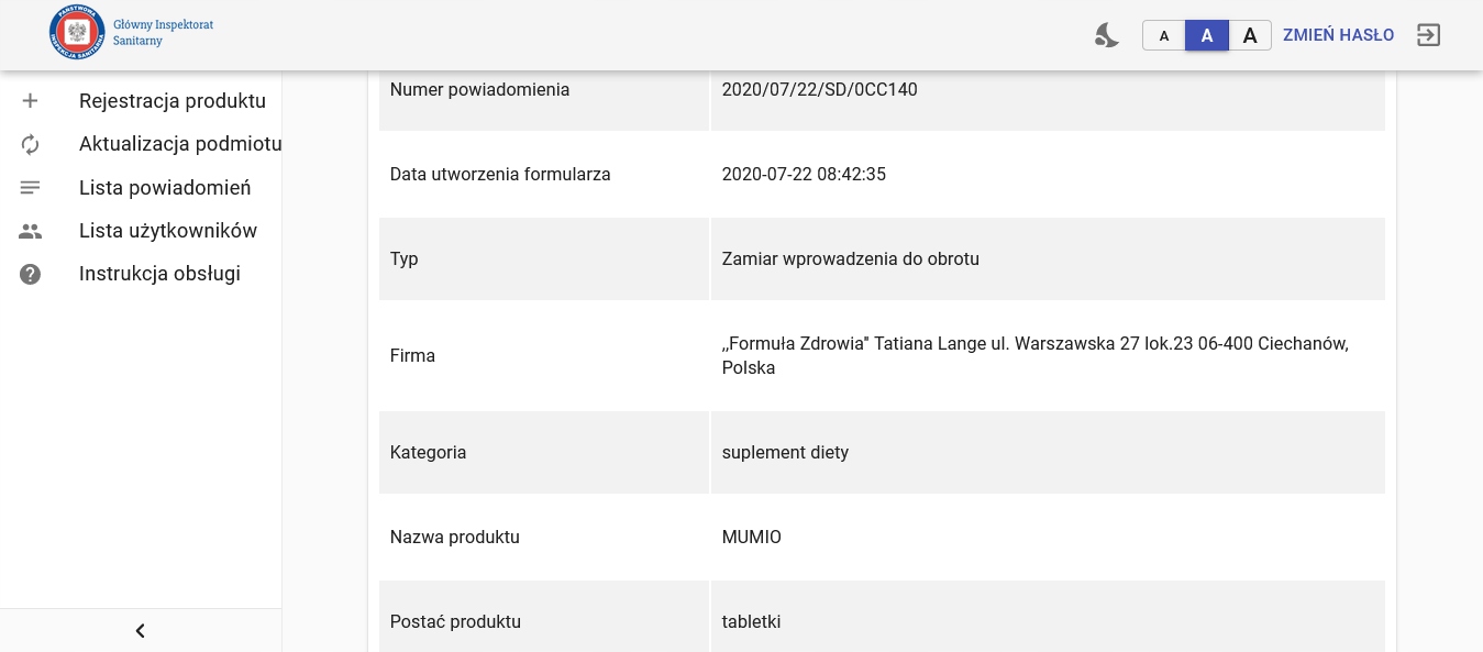 Dystrybutor: ,,Formuła Zdrowia’’ Warszawska 27, 06-400 Ciechanów