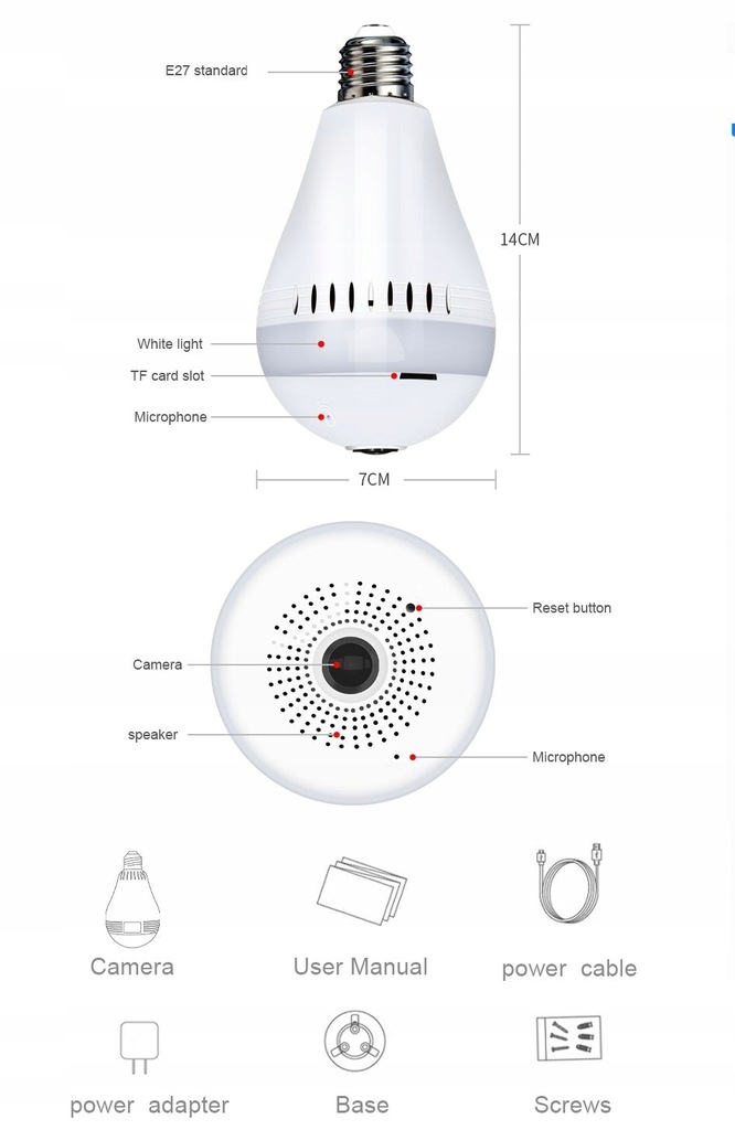 ⚡️Ze względu na swój niepozorny wygląd, urządzenie nie rzuca się w oczy. Pełni ono podwójną funkcję – kamery oraz zwykłej żarówki z diodami LED.