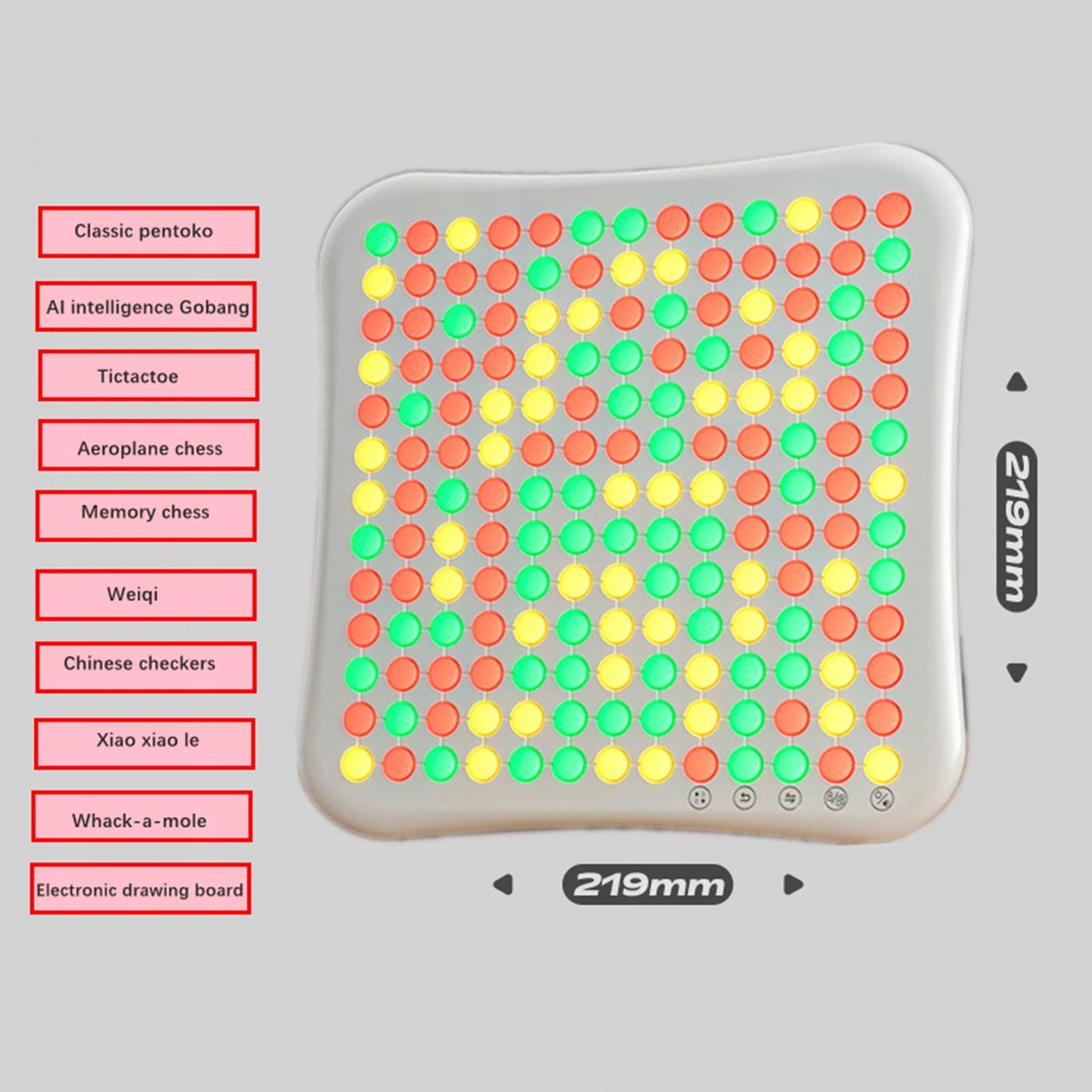 [Multi Function]: Board posiada wiele funkcji: Classic Gobang, Ai Gobang, Toe, Flying Chess, Memory Chess, Go, Checkers, , Whack a Mouse, Three color Electronic Draw Board