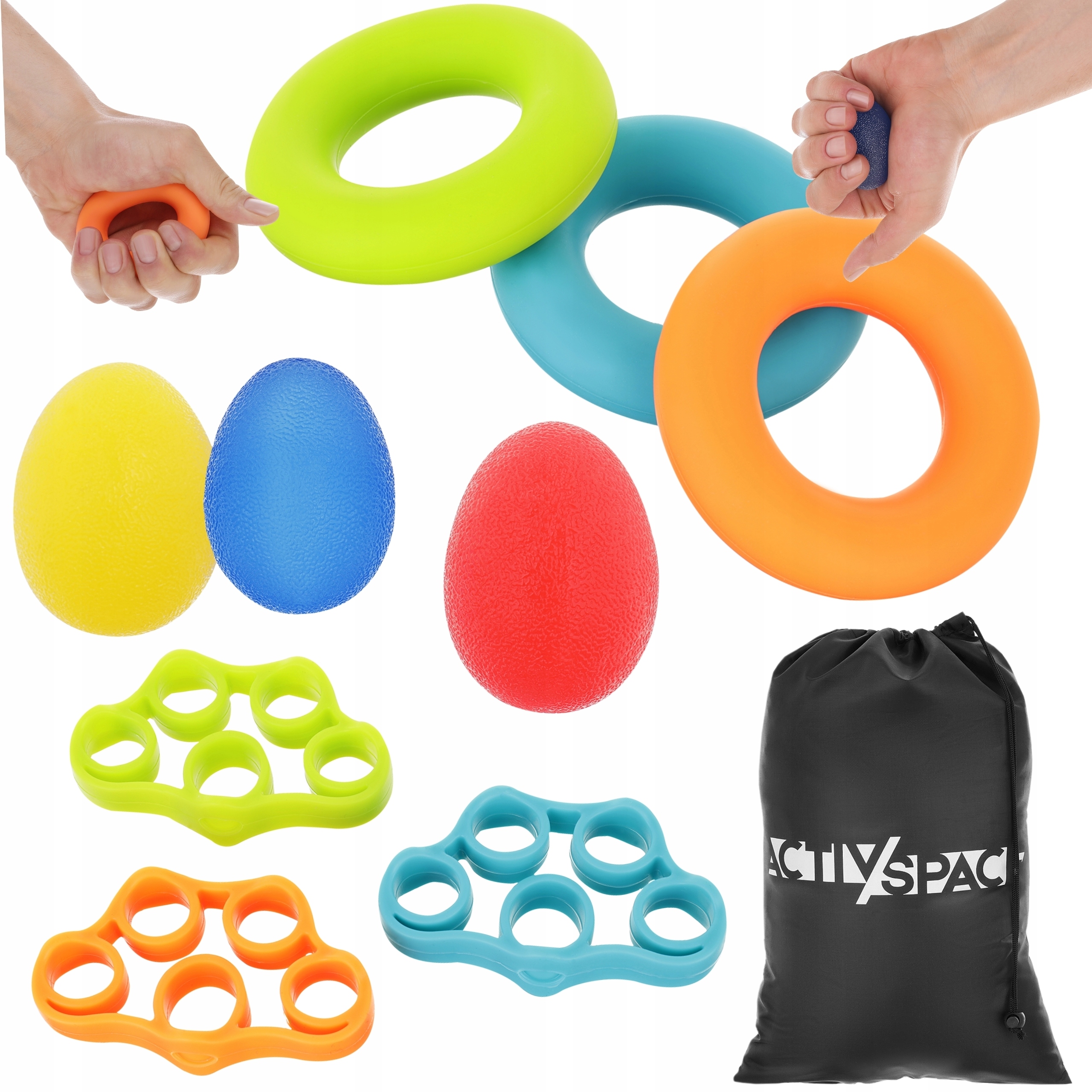 Trener dłoni od ACTIV/SPACE to zestaw aż 9 gum! Przyrządy do ćwiczenia rąk z różnymi oporami łatwo dopasujesz do swoich możliwości i wymagań.