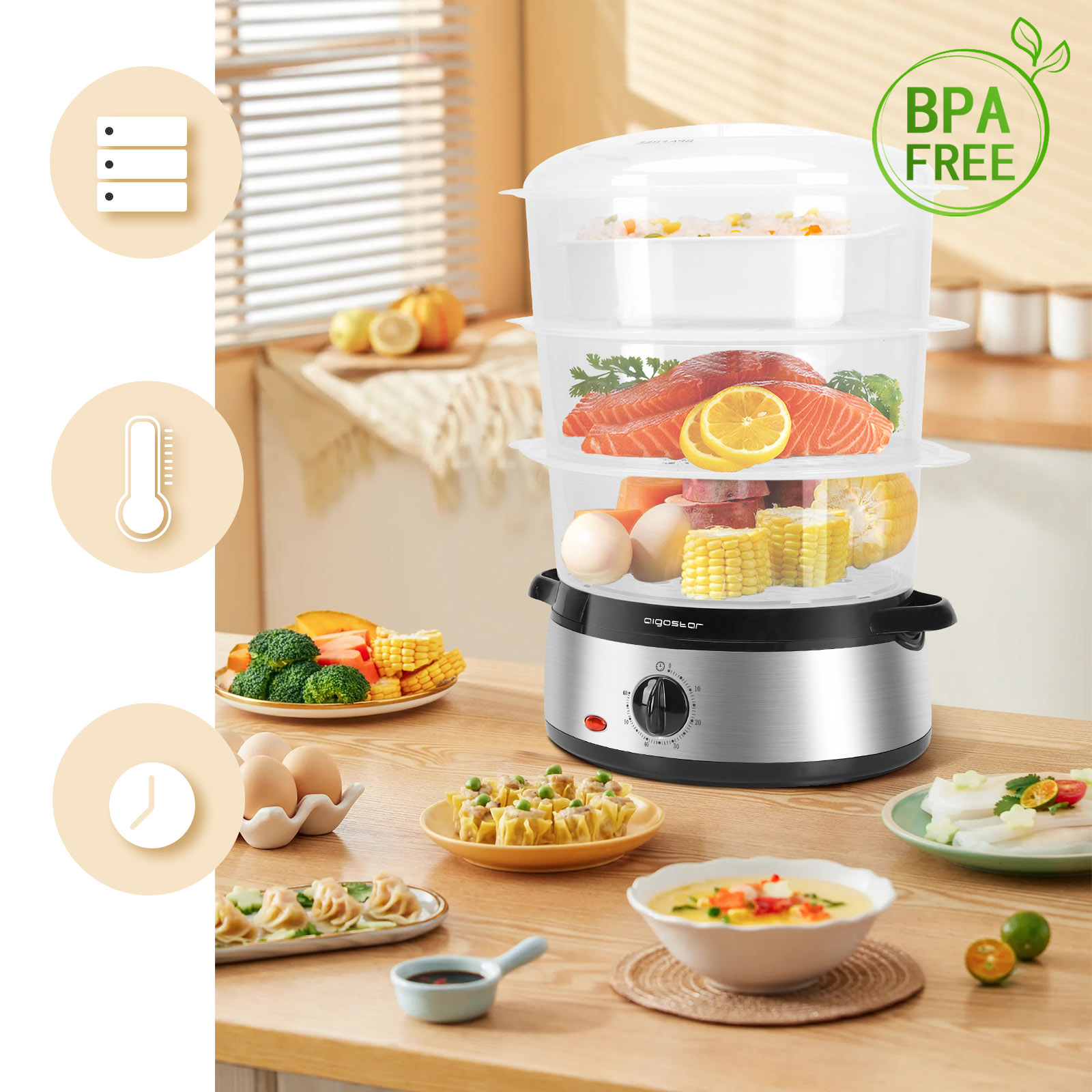Parowar elektryczny Aigostar 9L 800W Gotowanie na parze minutnik ryż zupa