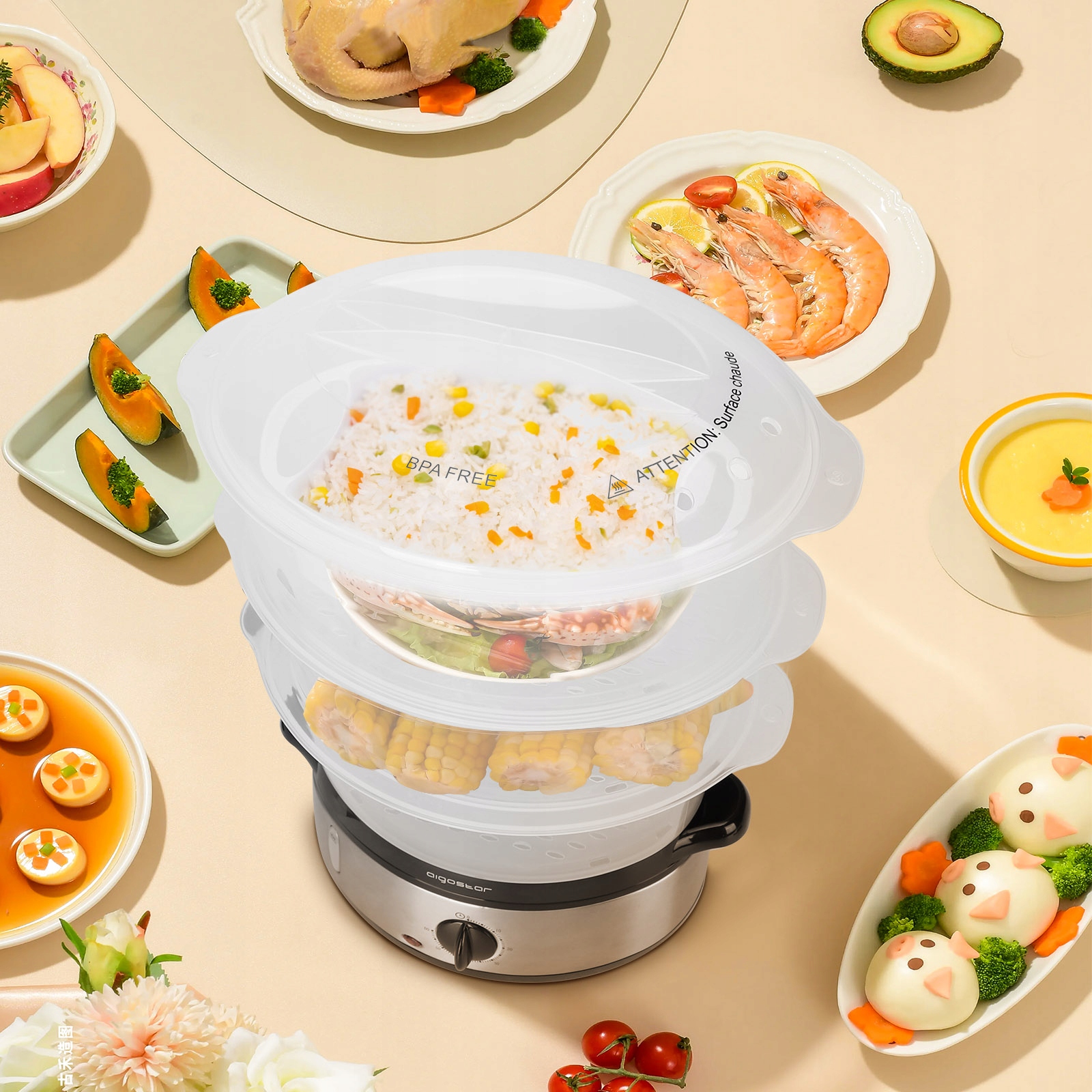 Zdrowy proces gotowania na parze jest alternatywą dla gotowania na oleju w wysokiej temperaturze, mocna para pomaga zatrzymać wartości odżywcze. Dania są niskokaloryczne, zdrowe i smaczne.