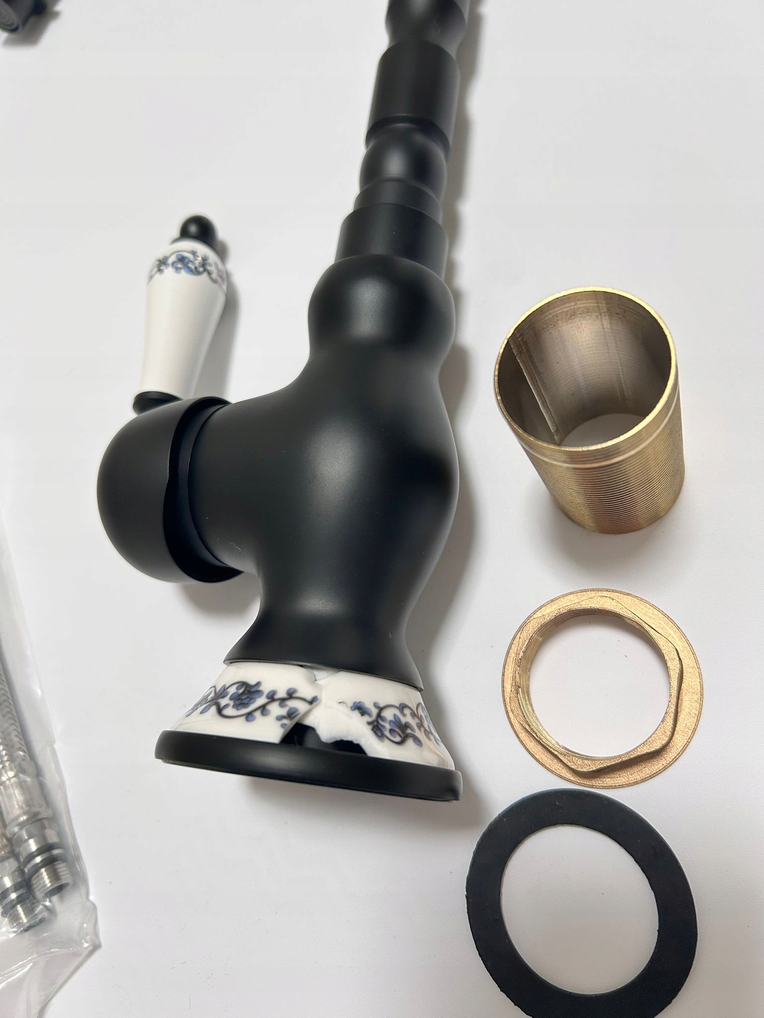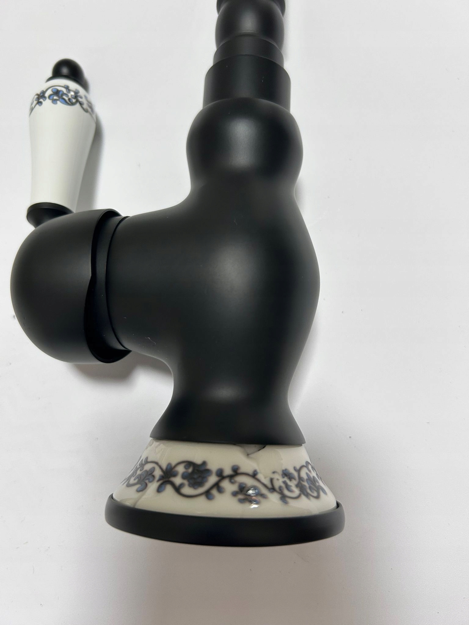 Piękna bateria umywalkowa posiada elementy dekoracyjne z ręcznie zdobionej ceramiki. Bateria przenikająca stylem. Bardzo ładnie prezentuje się na każdej umywalce.