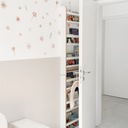 Regał został zaprojektowany tak, by idealnie dopasować się do każdego wnętrza. Jego wąska, pionowa forma sprawia, że doskonale wykorzystuje przestrzeń, która zwykle pozostaje nieużywana – na przykład za drzwiami. To idealne rozwiązanie do małych pokoi, gdzie liczy się każdy centymetr.