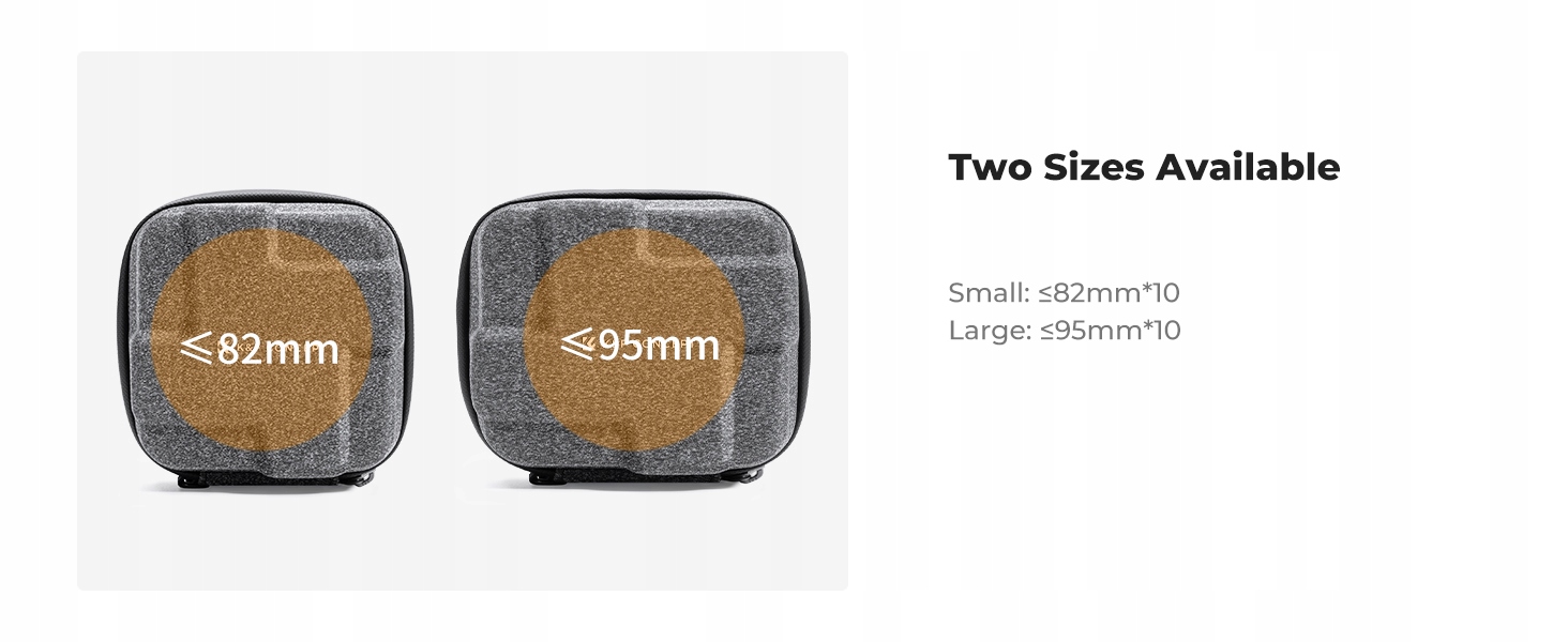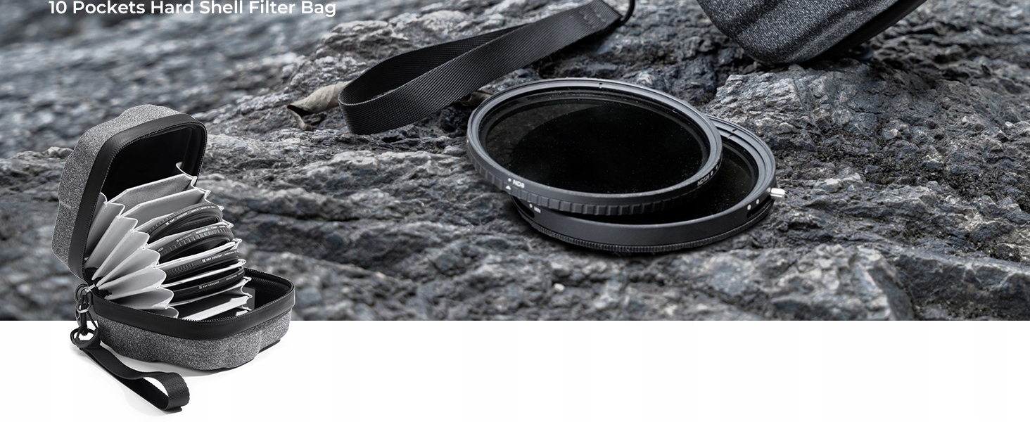 Szerokość kieszonek pozwala na przechowanie dowolnych filtrów okrągłych w rozmiarze 37mm - 82mm.