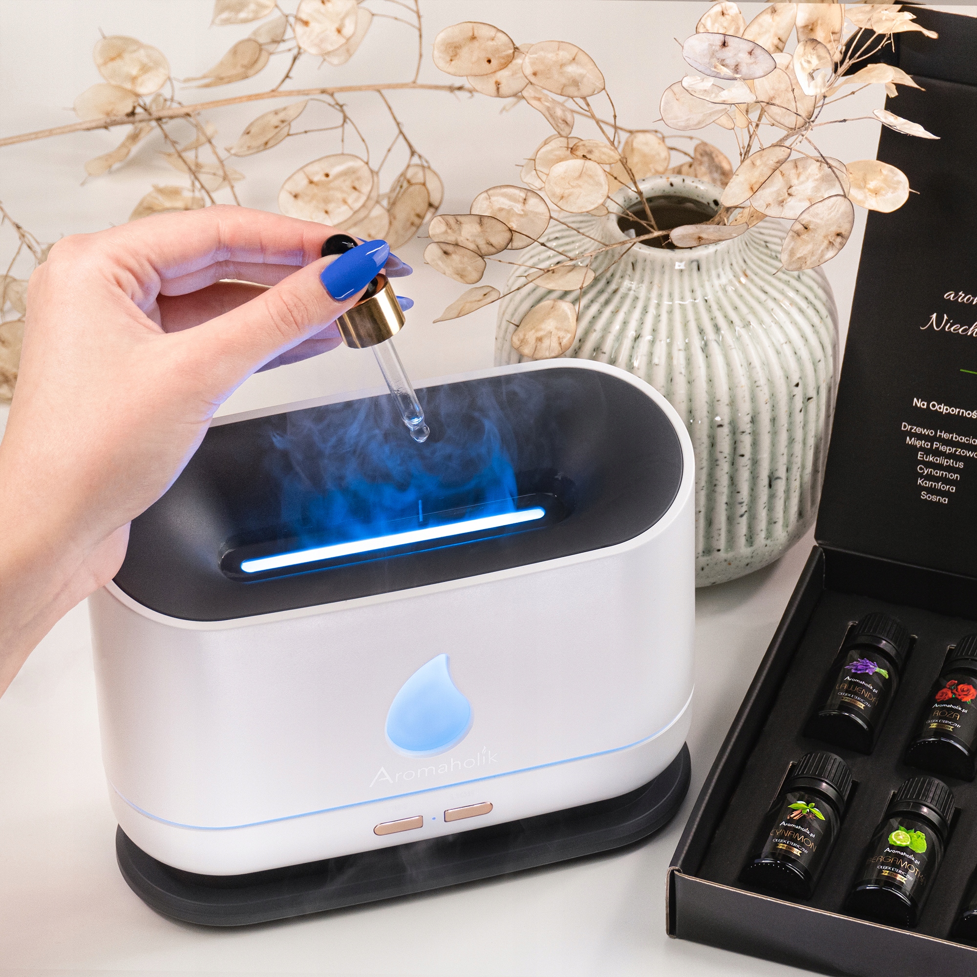 ✅ Cały zestaw wystarcza do uzupełnienia ponad 200 pełnych zbiorników nawilżacza powietrza 200ml i ponad 500 napełnień kominka zapachowego. Olejki są w pełni rozpuszczalne w wodzie, dzięki czemu można je bezproblemowo stosować we wszystkich urządzeniach rozpylających i odparowujących – nie zostawiają osadów i nie zatykają kanalików.