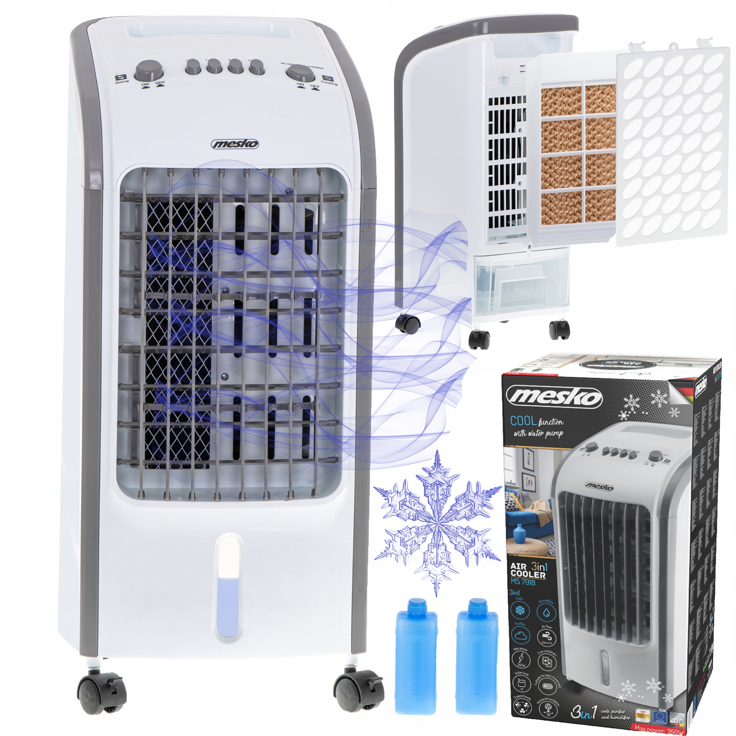 MESKO MS 7918 to uniwersalny klimator, który umożliwia skuteczne obniżenie temperatury pomieszczenia, a jednocześnie poprawia jakość powietrza poprzez jego oczyszczanie i nawilżanie. Wyposażony w czytelny panel sterowania pozwala na szybki wybór jednego z trzech trybów nawiewu.