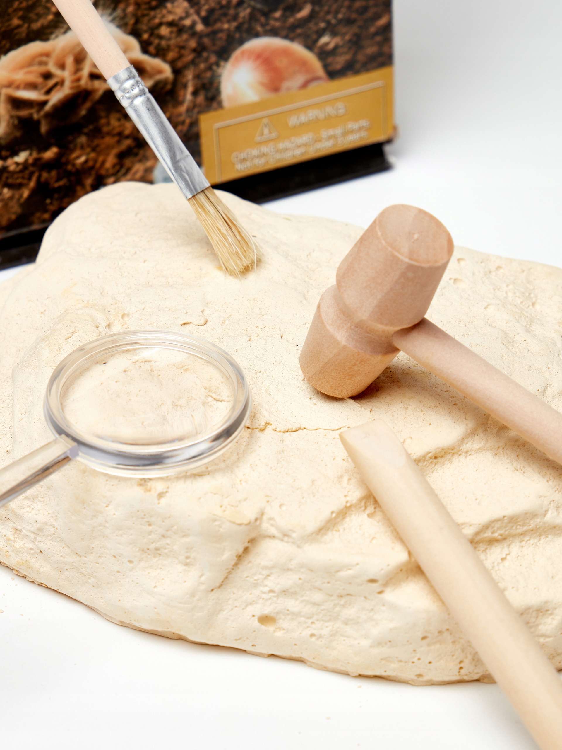 Do odkrycia piękne kamienie, w zestawie znajdziesz młotek, dłuto, drewniany pędzelek oraz lupę do przeglądania kamieni - wszystko, co potrzebne, by rozpocząć przygodę nie tylko z archeologią, ale także ze sztuką i rękodziełem.