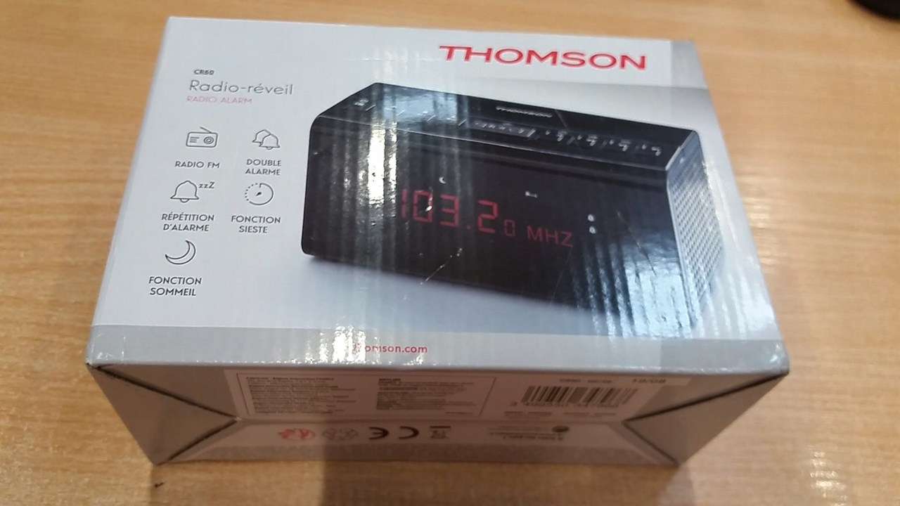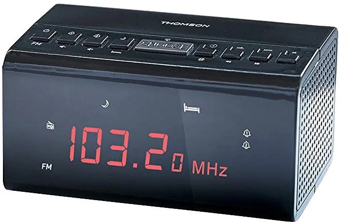 Radio budzik THOMSON CR50 - Analogowy tuner FM - Pobudka brzęczykiem/radio - Funkcje radia / uśpienia / drzemki - Zasilanie awaryjne budzika: baterie 2 X LR03 AAA (nie znajdują się w zestawie) - Zasilanie: 230 V/ 50 Hz