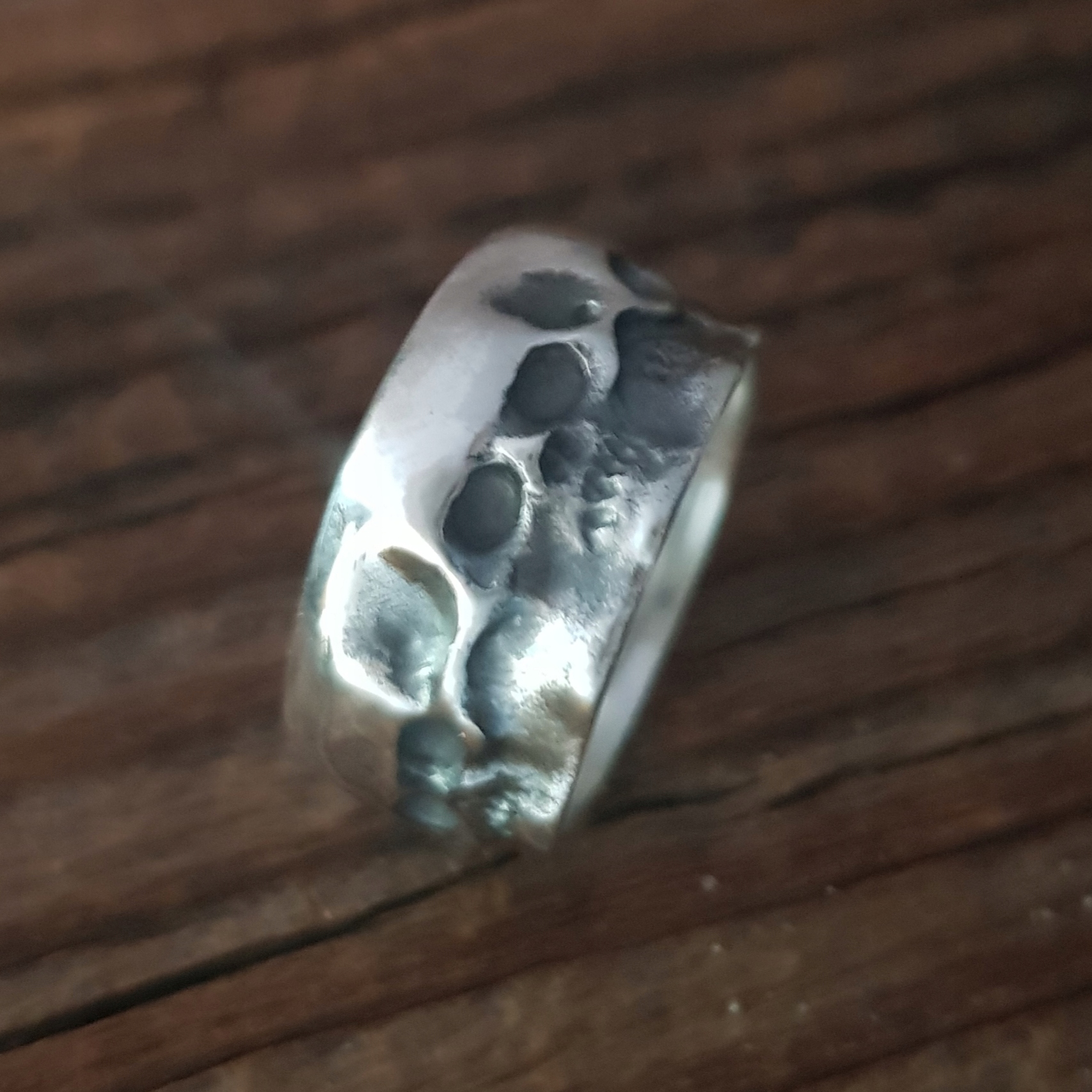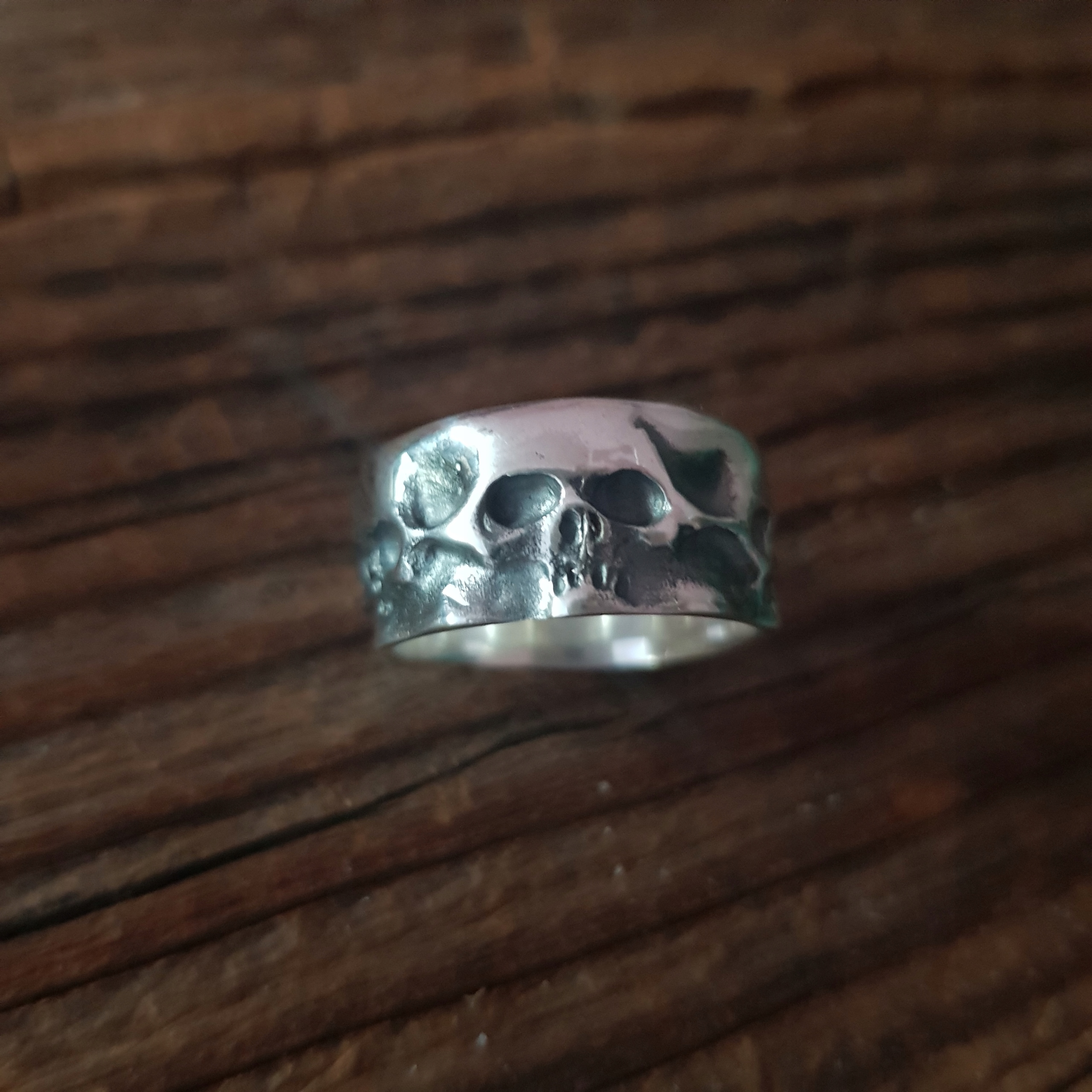 nowa obrączka czaszkami w całości wykonana ze srebra próby 925 (nie uczula-ważne dla alergików).