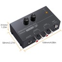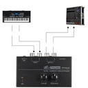 2 wejścia RCA (L i R), 2 wyjścia RCA (L i R), 1 wyjście 1/4" TRS, wiele opcji połączeń.