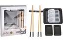 Stylowy zestaw do serwowania sushi, wykonany z ceramiki oraz drewna bambusowego.