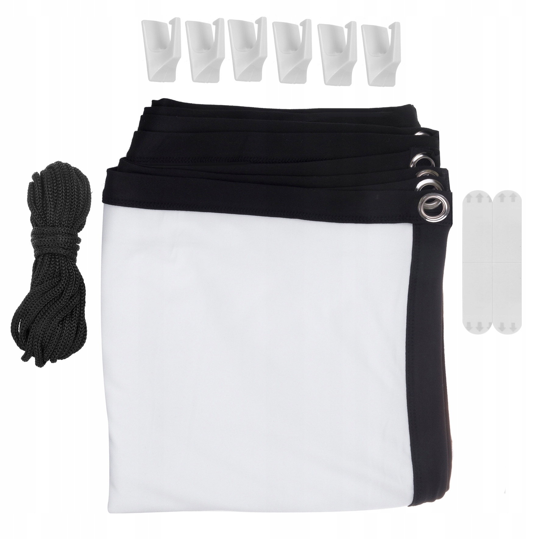 Ekran mocowany jest do ściany za pomocą dołączonych haczyków oraz taśmy samoprzylepnej, dzięki czemu można go łatwo zdjąć i zamocować w innym miejscu.