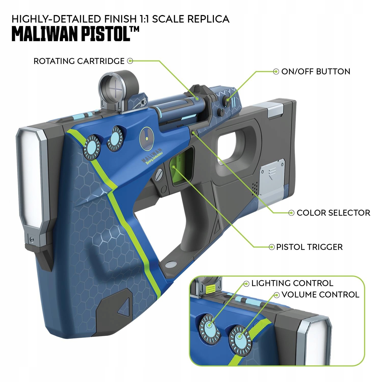 Przenieś tę doskonale wykonaną broń z gry Borderlands 3 do prawdziwego świata. Replika pistoletu Maliwan posiada działające przełączniki i obracającą się kasetę z amunicją, która zwiększa prędkość, gdy przytrzymasz spust, aby zasymulować faktyczne użycie. Obejmuje także światła i efekty dźwiękowe, które można zobaczyć i usłyszeć z pistoletu podczas gry.