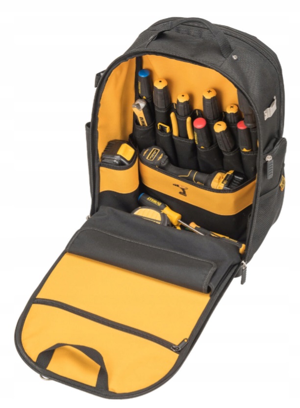 Plecak narzędziowy DEWALT DWST81690-1 to wytrzymałe i pojemne rozwiązanie do przechowywania narzędzi, akcesoriów oraz elektroniki. Wykonany z materiałów o wysokiej gęstości – 1200 denier na zewnątrz i 600 denier wewnątrz – zapewnia zwiększoną ochronę zawartości. Wzmocniona, wodoodporna podstawa chroni przed wilgocią i zużyciem. Plecak posiada oddzielną, wyściełaną przegrodę na laptopa lub dokumenty, a także liczne kieszenie wewnętrzne i zewnętrzne, umożliwiające organizację narzędzi. Ergonomiczne, wyściełane paski na ramiona oraz uchwyt do przenoszenia zapewniają komfort podczas transportu.