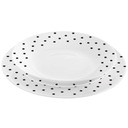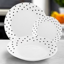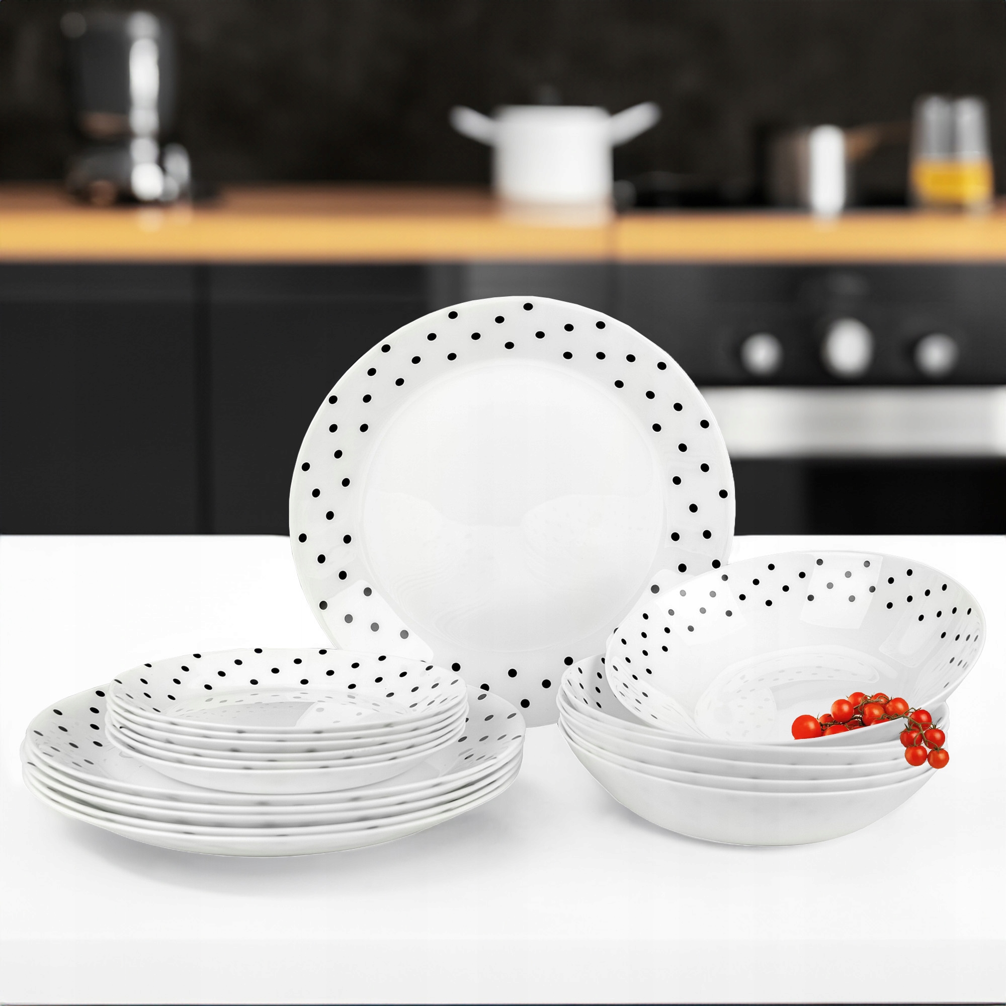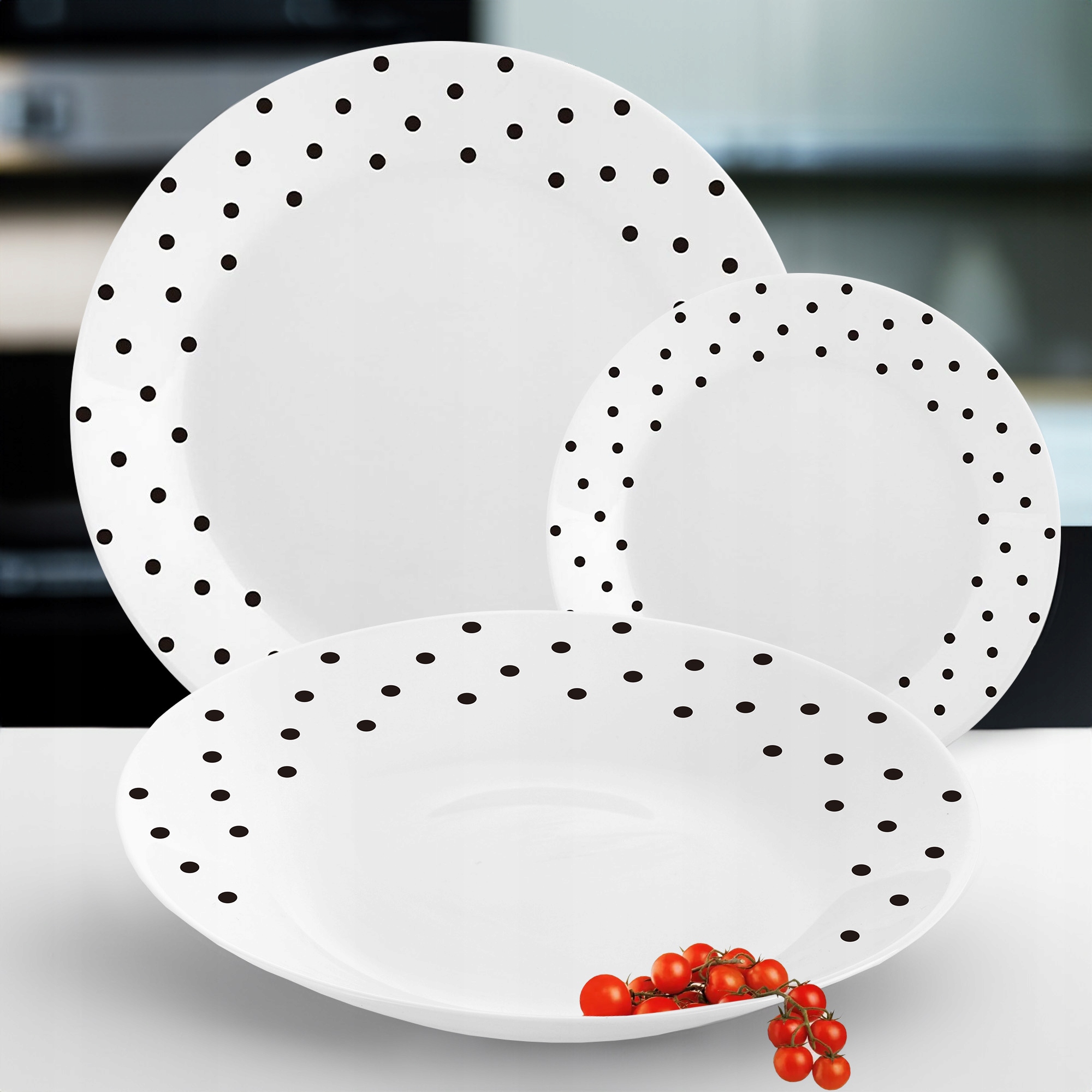 ▶️Każdy talerz posiada zdobienia na krawędziach w postaci delikatnych, czarnych kropek, dodających imponującego wyglądu i subtelnego stylu. Ta elegancka ozdoba dodaje imponującej klasy każdemu posiłkowi, niezależnie od okazji.