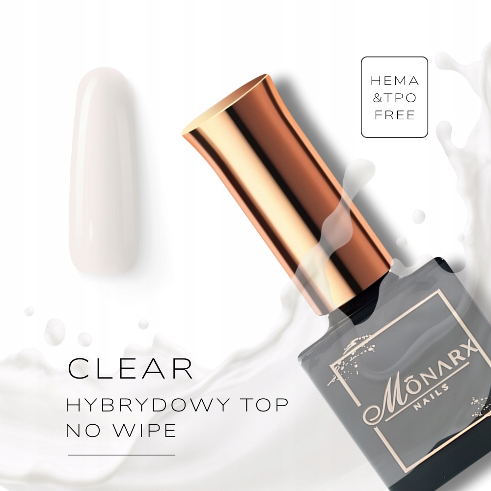 Top hybrydowy przezroczysty rzadkiej konsystencji Monarx. Pozbawiony warstwy dyspersyjnej. Idealnie zabezpiecza stylizację przed odpryskiwaniem i wydłuża jej trwałość pozostawiając przy tym piękny połysk. Nie zmienia koloru lakieru podkładowego. Uniwersalny - można go stosować zarówno z hybrydami, jak i żelami oraz akrylami.