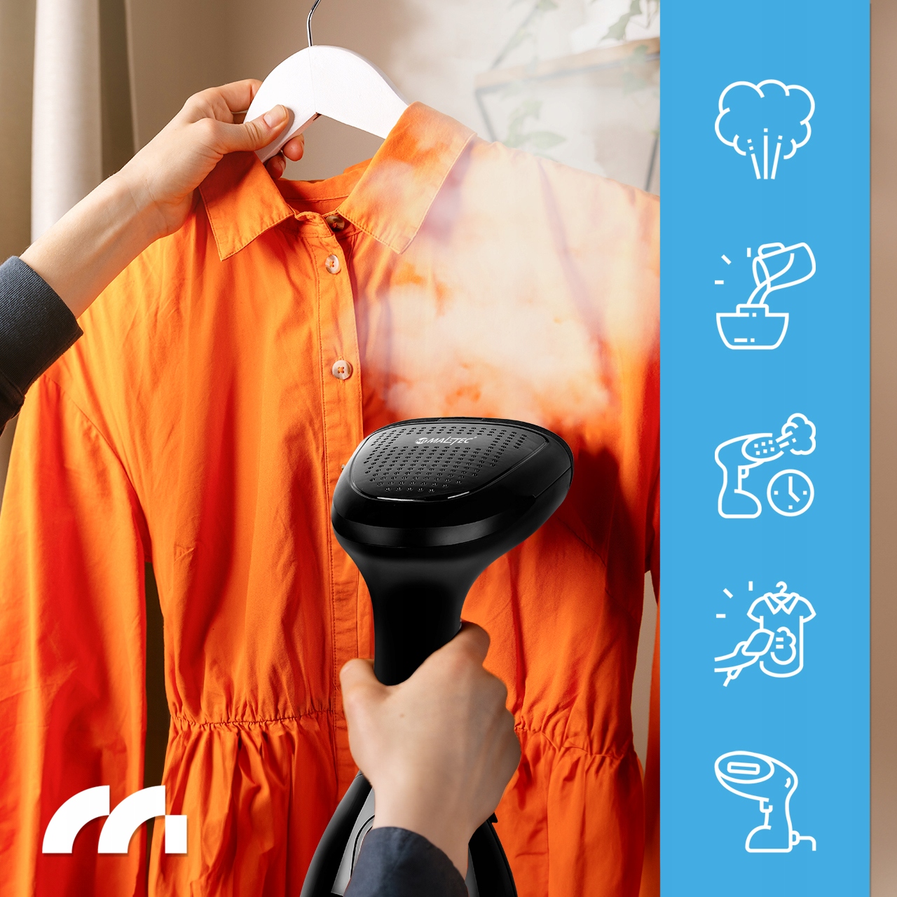 Высокая температура пара также является отличным способом обеззараживание. Помогает избавиться не только от складок, но и удаляет до 99,97% бактерий и вредных микробов и аллергенов, которые могут находиться на материале. Благодаря этому освежение одежды с помощью отпаривателя Handig особенно рекомендуется людям со склонностью аллергические реакции, позволяя вам наслаждаться любимой одеждой, ограничивая риск реакции аллергическая.
