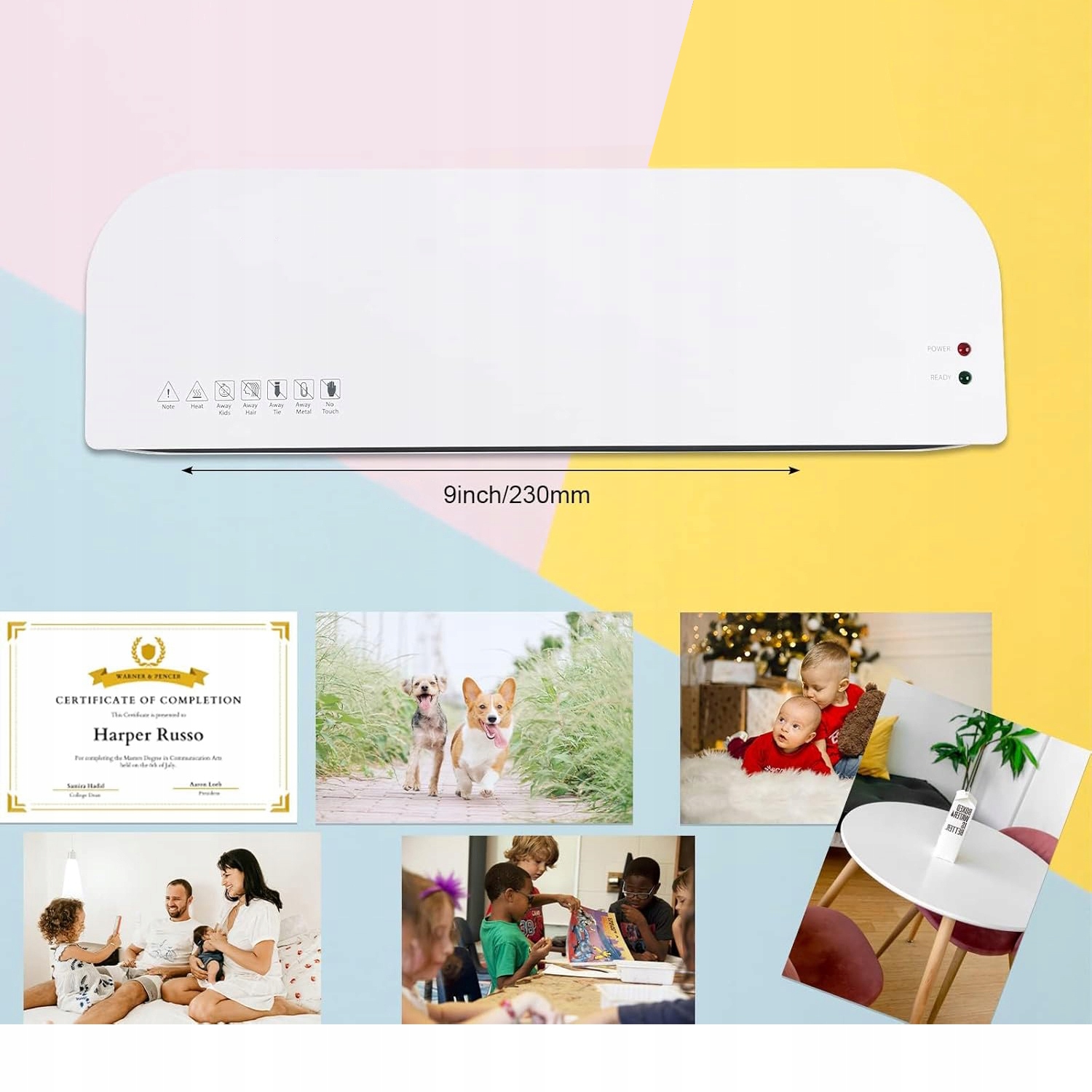 ✔️Laminowanie jest możliwe w szerokościach do 230 mm (A4) i grubości do 0,5 mm. Nadaje się do dokumentów, zdjęć, kart, certyfikatów, zezwoleń na pracę, menu, obrazów itp.