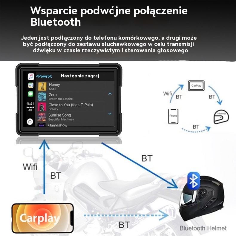• Połączenie bezprzewodowe: obsługuje bezprzewodowe dublowanie ekranu Apple Carplay i Android Auto, nie ma potrzeby skomplikowanego okablowania, plug and play.