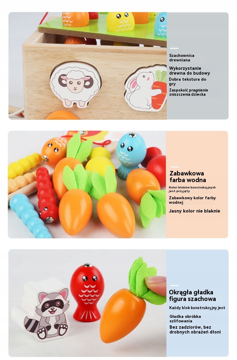 Ten zestaw do zbiorów marchewek z drewna to dobrze wykonana drewniana zabawka Montessori, która zapewnia niemowlom, małym dzieciom, chłopcom i dziewczętom w wieku 1-3 lat i starszym doskonałą możliwość treningu motoryki precyzyjnej. Jeśli używasz kolorowych robaków i owoców, aby maluchom farby, liczenie, robaki i przyporządkowywać kształty, to jest to cudowna edycja, która rozwija wczesną inteligencję Twojego malucha.