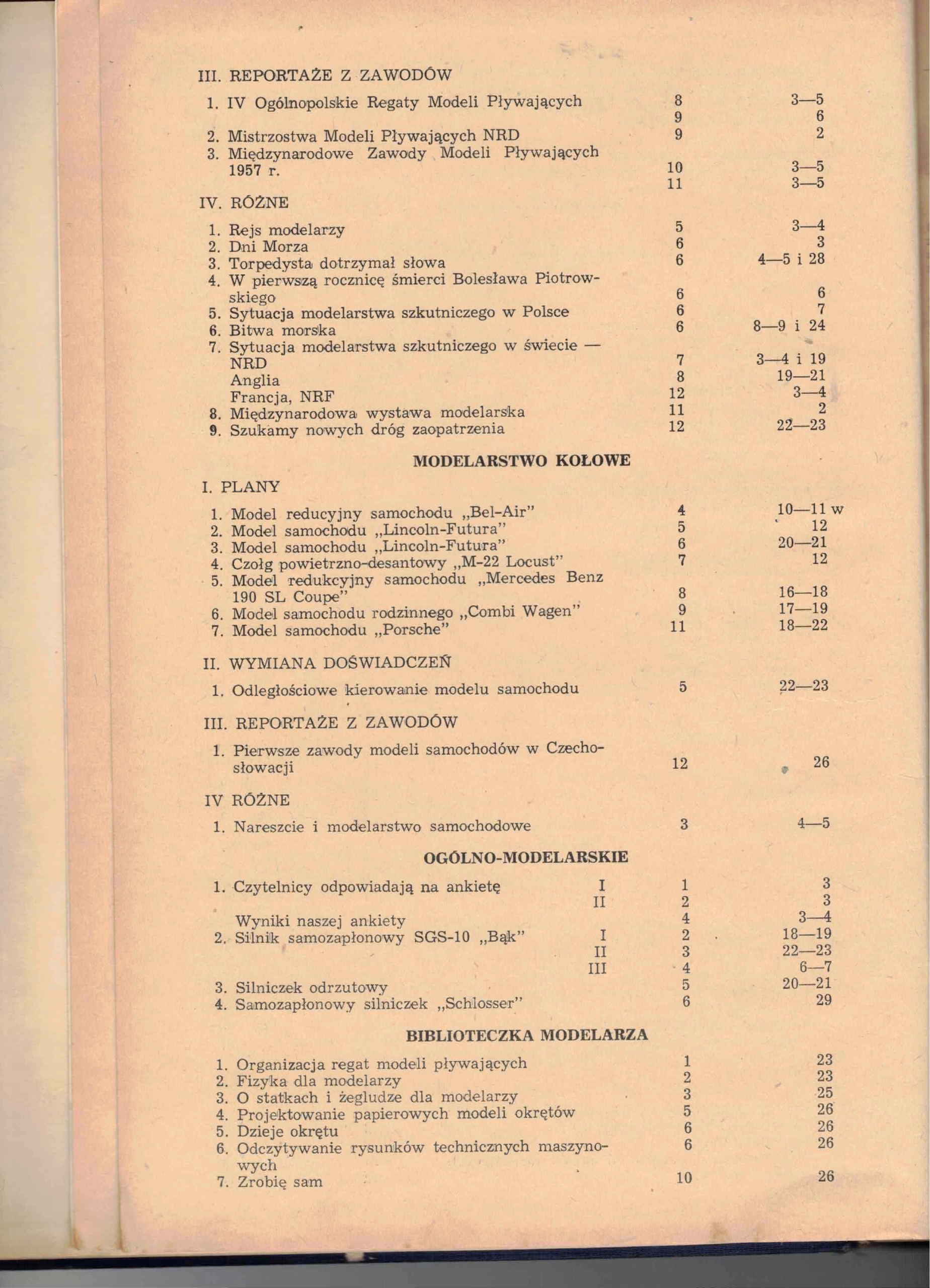 "Modelarz - oprawiony , kompletny rocznik 1957- dla modelarzy Wydawnictwo: ZG Ligi Obrony Kraju ;spis treści rocznika 1957 na zdjęciach