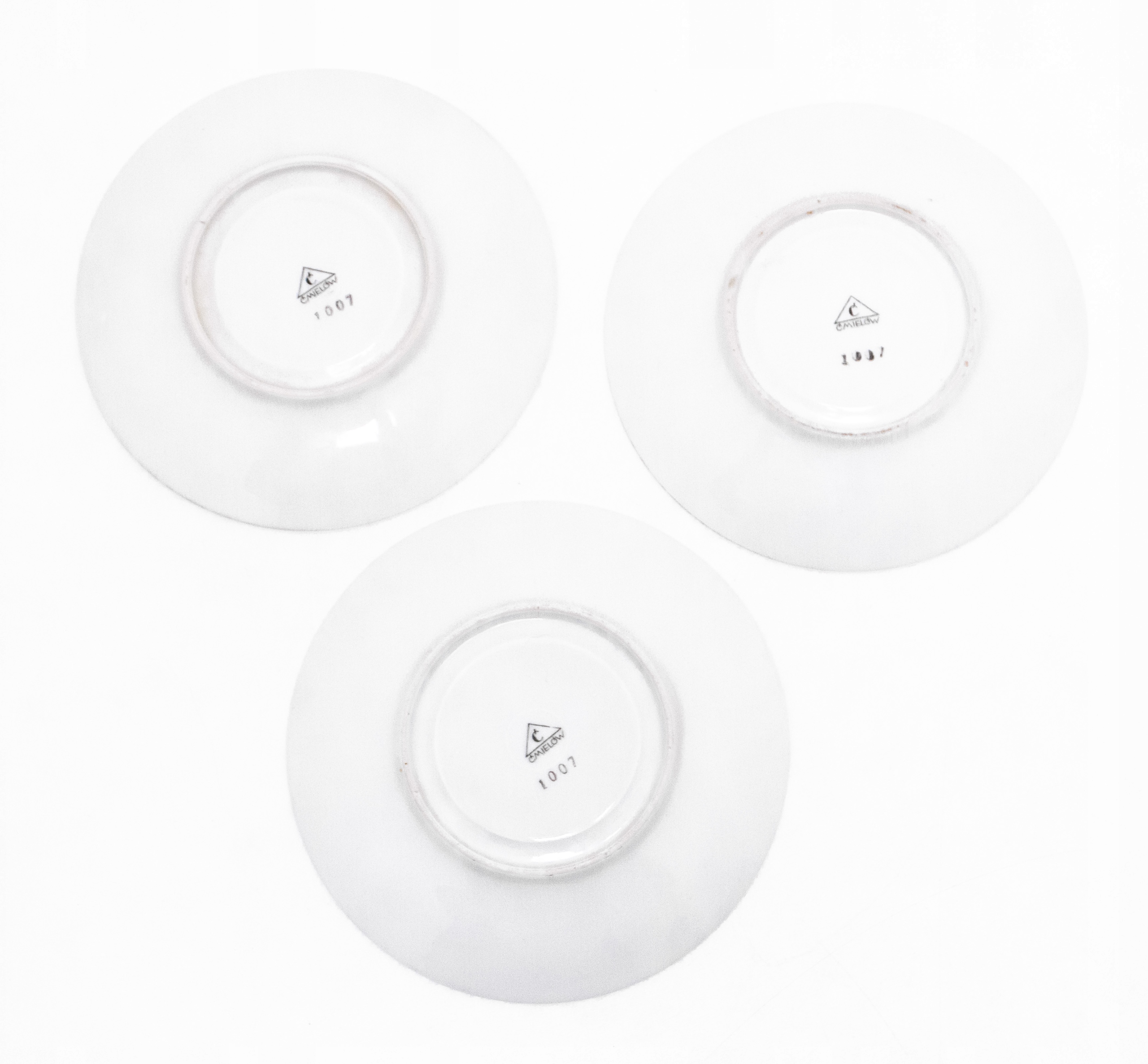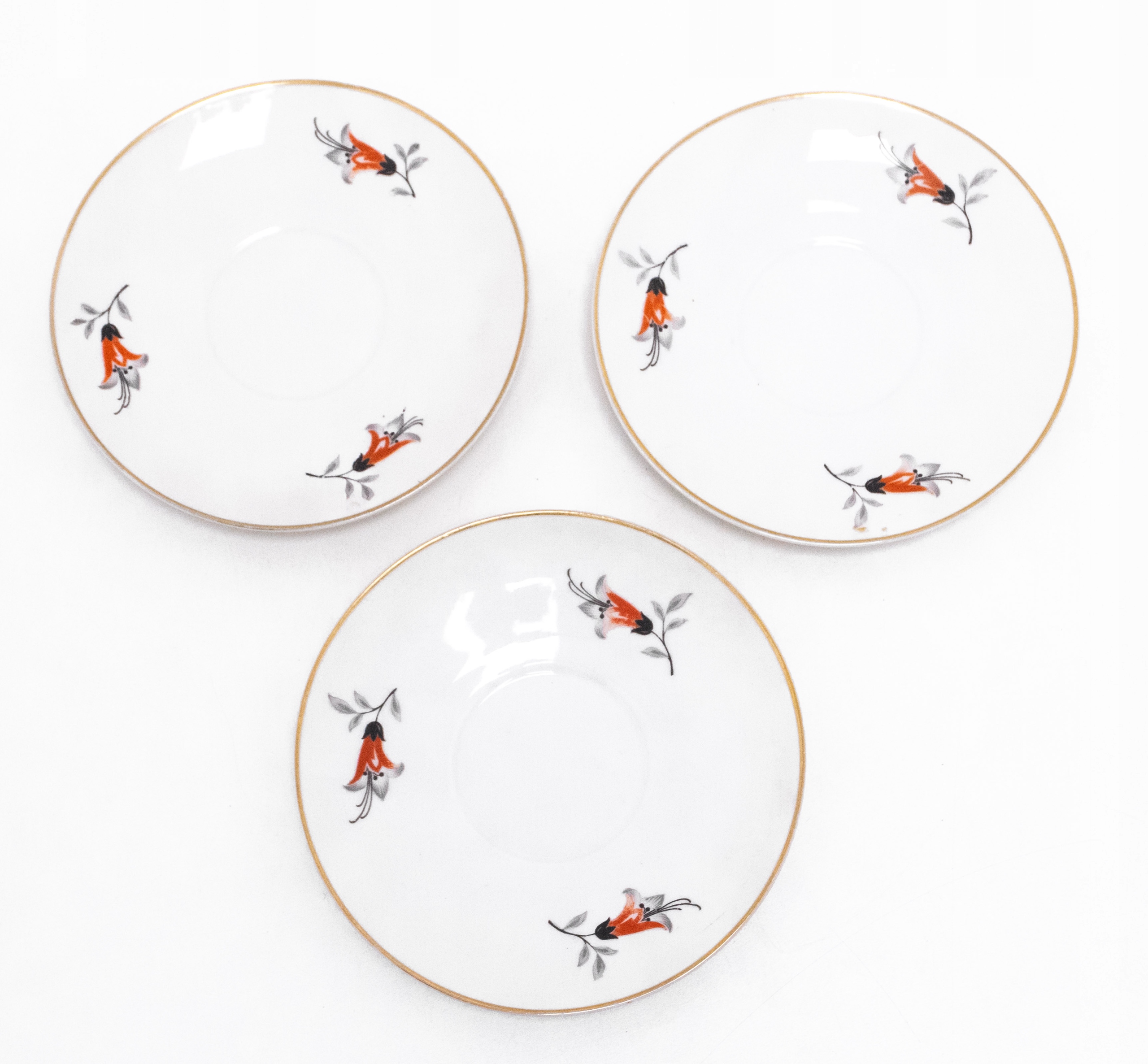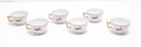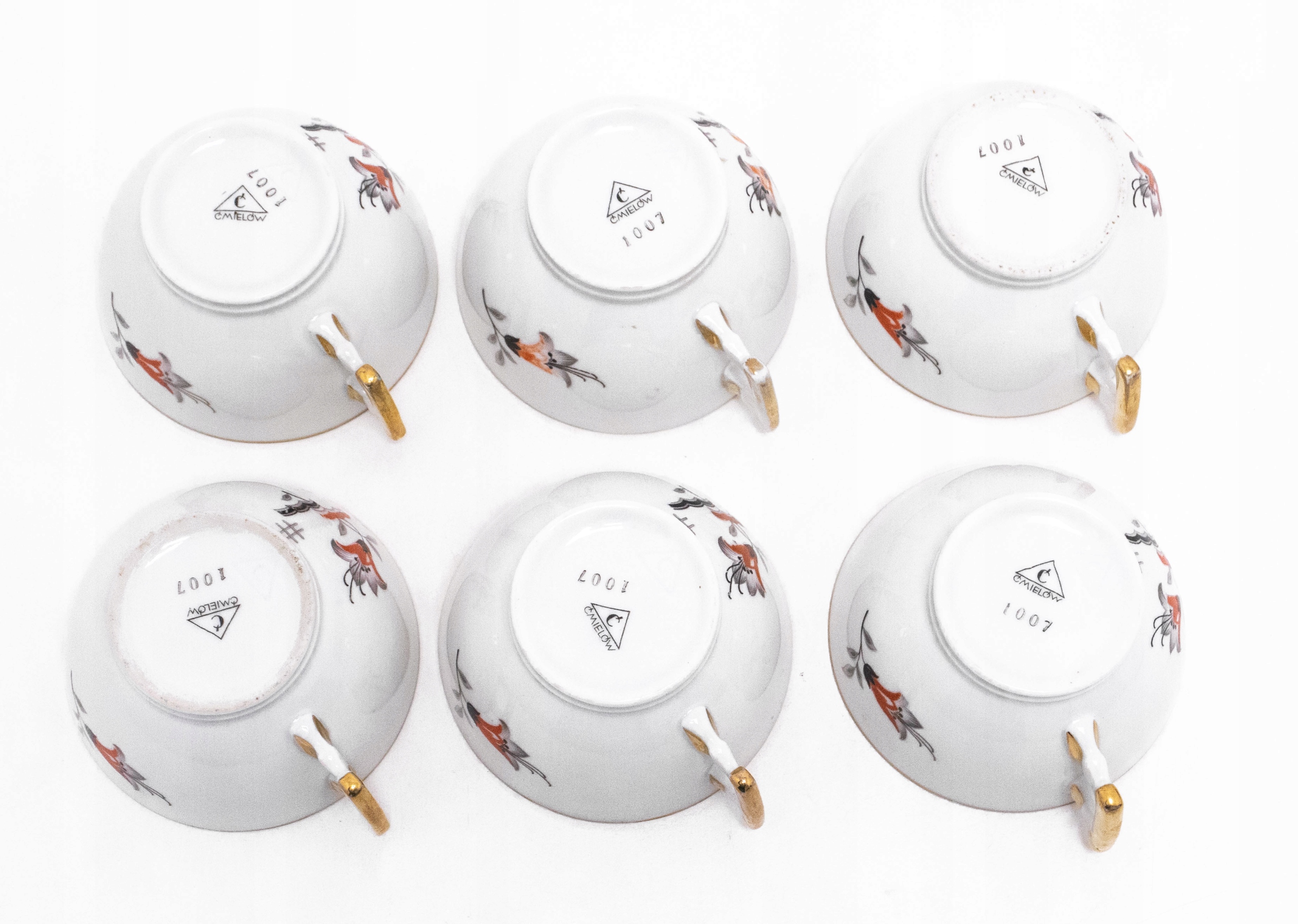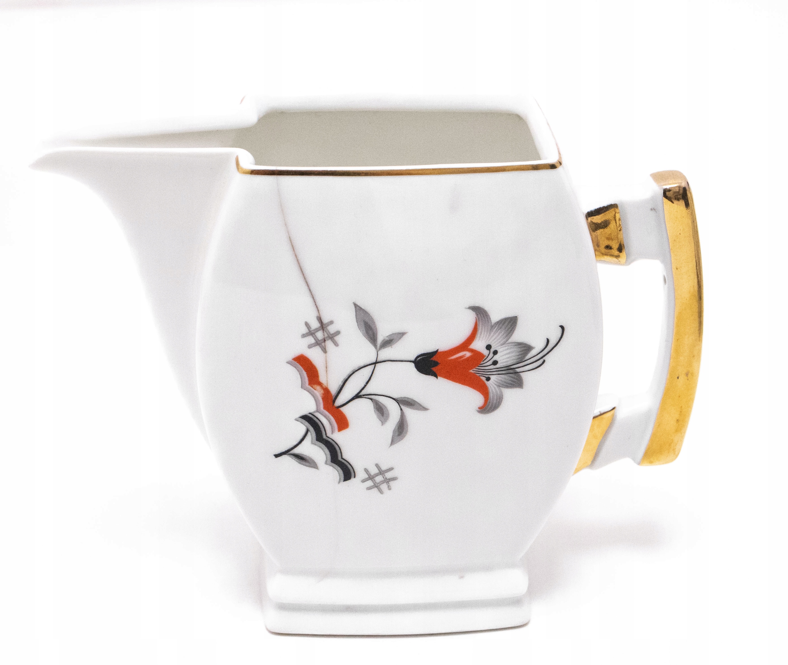Набор используется, имеет следы использования в виде мелких царапины и ссадины, местами потертые украшения, трещина на молочнике.