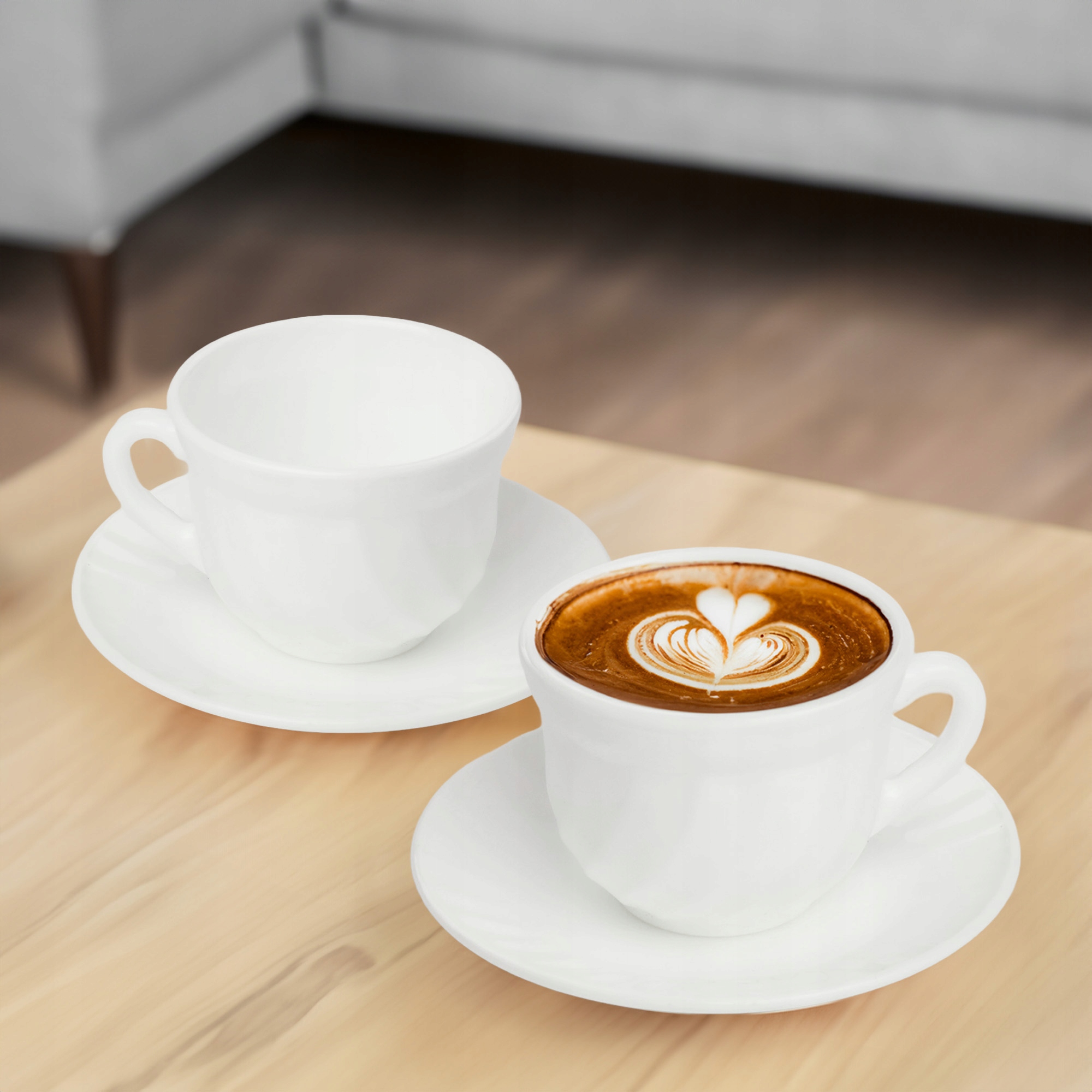 ✨Ten elegancki komplet zawiera sześć filiżanek do kawy, herbaty o pojemności 190 ml każda wraz ze spodkami. Komplet jest wykonany z najwyższej jakości szkła hartowanego. Zdobienie na filiżance i spodku to idealne połączenie nowoczesności i tradycji.