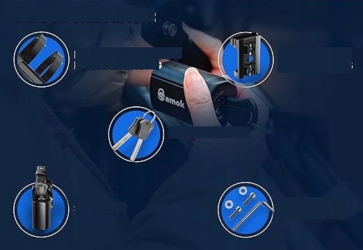 ŁATWY W UŻYCIU Otrzymasz uchwyt z akcesoriami montażowymi, które pasują do Twojego składanego zamka. Oznacza to, że możesz przymocować zamek bezpośrednio do roweru i jest on automatycznie dołączony.