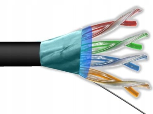 Wysokiej jakości kabel sieciowy, ekranowany, żelowany F/UTP kat. 5e, składa się z czterech par przewodów skręconych asymetrycznie wykonanych z czystej miedzi, oddzielonych od siebie przy pomocy separatora krzyżowego. Jego zastosowanie powoduje zmniejszenie zakłóceń występujących pomiędzy parami żył. Do izolacji żył został użyty jednolity polietylen HDPE, który cechuje się podwyższoną gęstością oraz szczególnie wysoką izolacją dielektryczną.