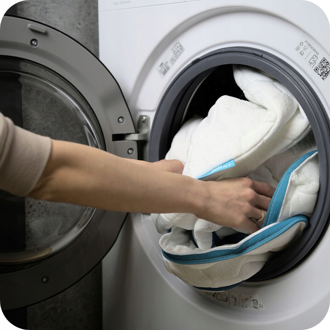✔️ Przystosowany jest do wielokrotnego prania w pralce w temperaturze 60°C, wirowania oraz suszenia w suszarkach bębnowych. Ze względów higienicznych warto wziąć pod uwagę nieduży rozmiar pokrowca materaca dziecięcego i prać go w całości. Z tego powodu w materacach dla dzieci nie stosujemy rozdzielnego zamka.