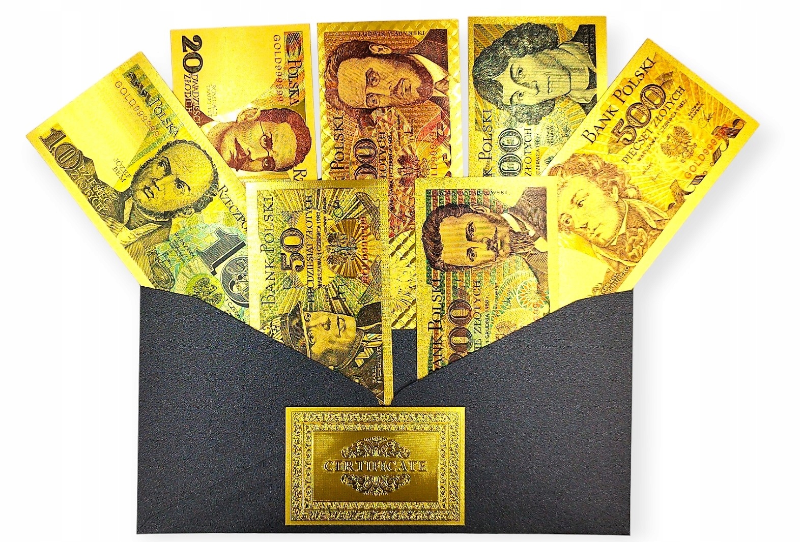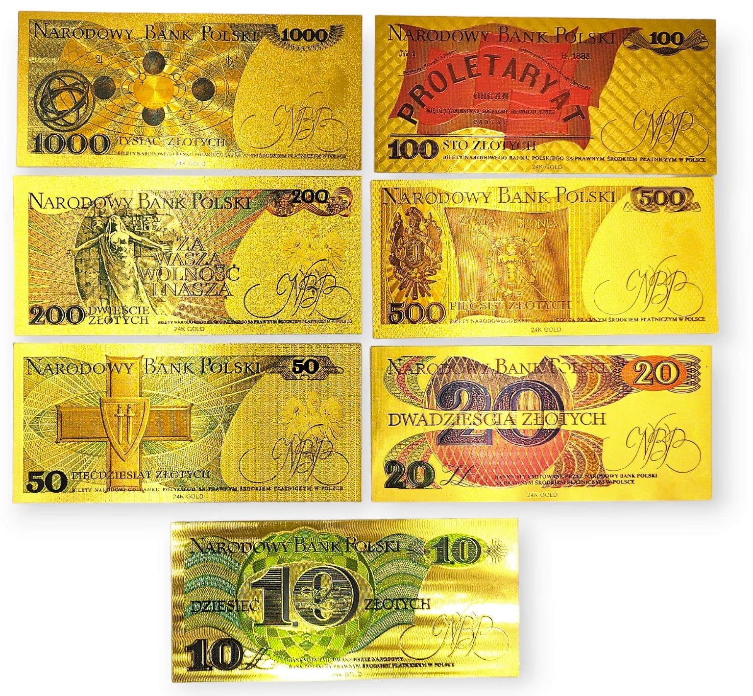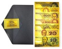 Unikatowy zestaw banknotów kolekcjonerskich wykonany z PCV oraz pokryty kolorową folią.