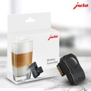 Zadbaj o pełną automatyzację i jeszcze większy komfort użytkowania ekspresu Jura. Bezprzewodowy nadajnik Jura Wireless Transmitter to niewielkie, ale niezwykle istotne akcesorium, które umożliwia komunikację ekspresu z chłodziarką do mleka Cool Control. Dzięki niemu urządzenia współpracują bezprzewodowo, dbając o odpowiednią temperaturę mleka i gotowość do działania – zawsze wtedy, gdy tego potrzebujesz.