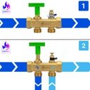 ➡️ Wielofunkcyjność – pełni rolę zaworu obejścia, zaworu zwrotnego, odpowietrzającego oraz poboru wody.