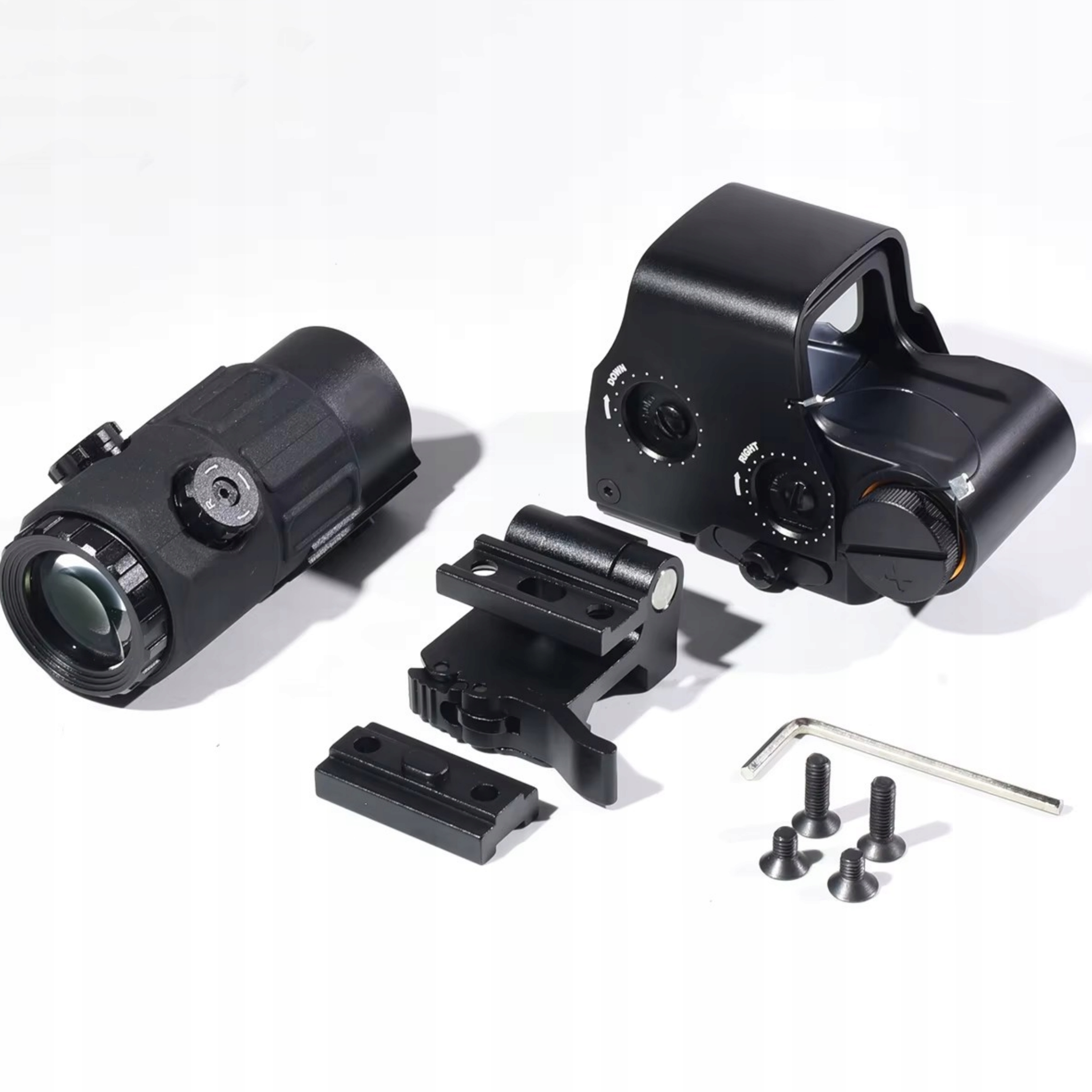 ZESTAW TAKTYCZNY - CELOWNIK OPTYCZNY 558 RED DOT GREEN DOT Z SZYBKOZŁĄCZKĄ I ZACISKIEM NA SZYNĘ 20 MM + POWIĘKSZENIE TAKTYCZNE G45 5X