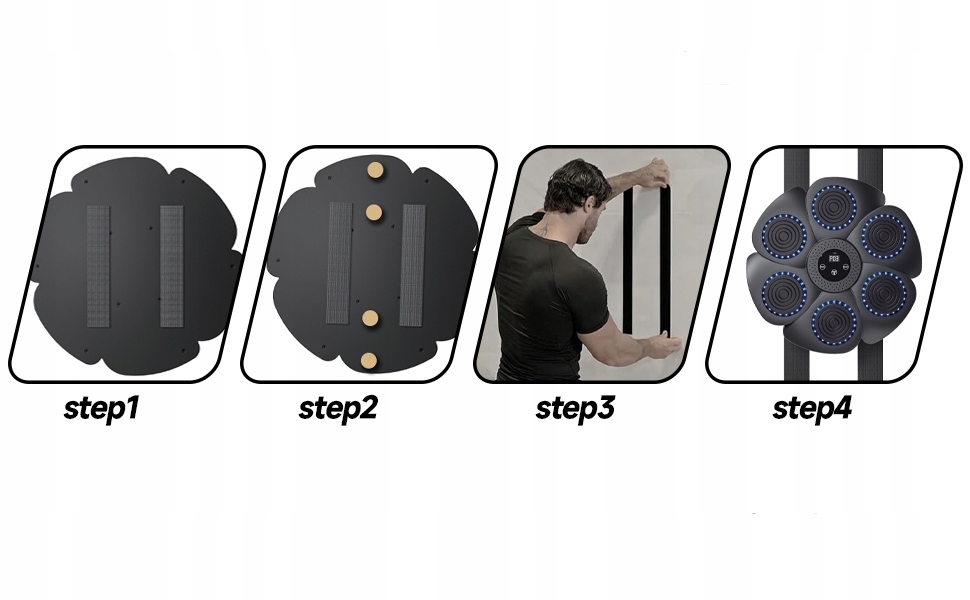 Konstrukcja montowana na ścianie, pogrubiona podszewka łącząca oraz bezpłatne rękawice bokserskie o długości pół palca, które zapewniają dobrą amortyzację i pochłanianie wstrząsów oraz nie są podatne na zakłócenia dźwięku. Można go łatwo zamontować bez wiercenia, co nie powoduje żadnych obaw.